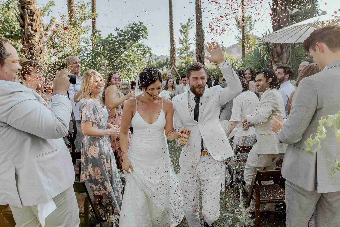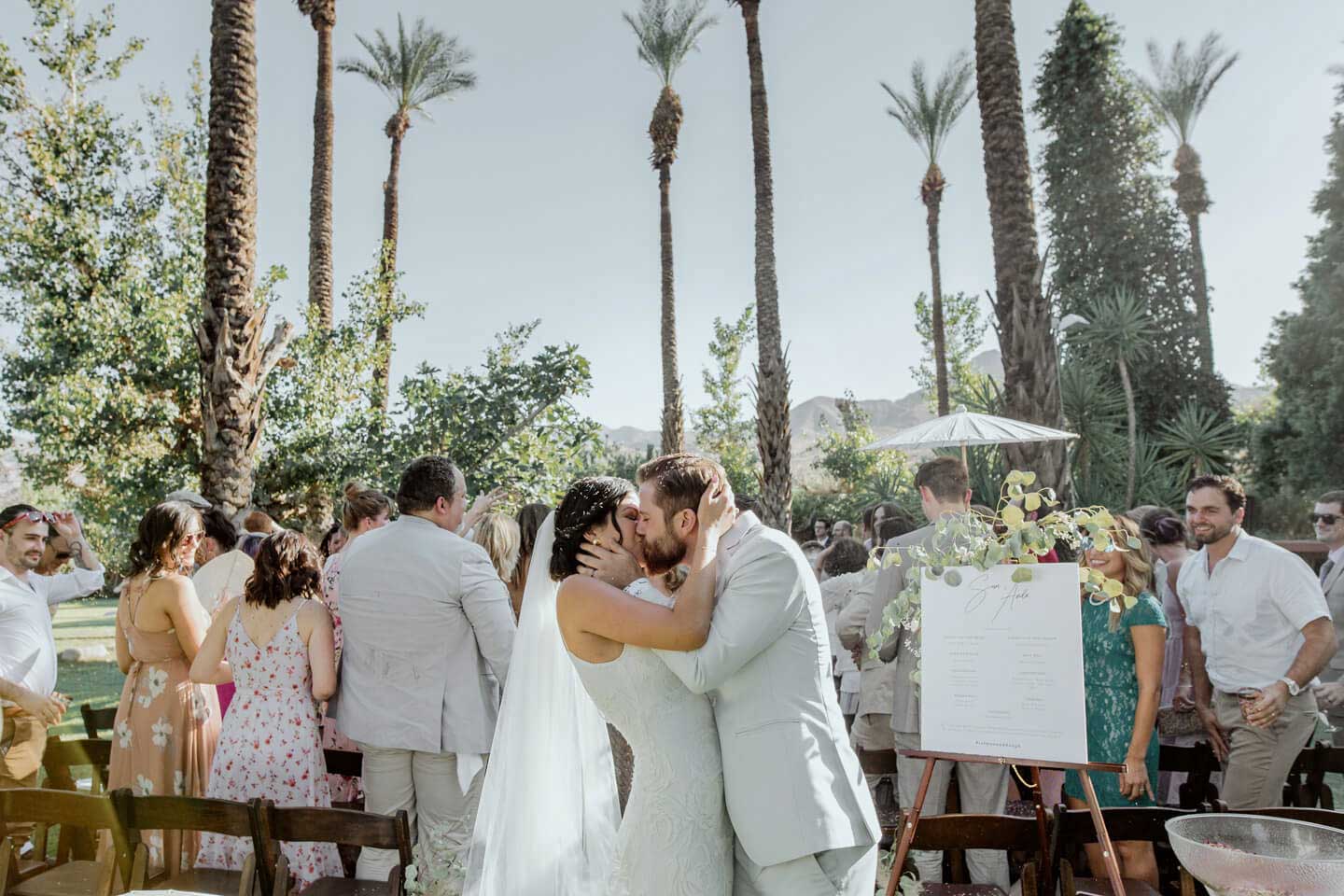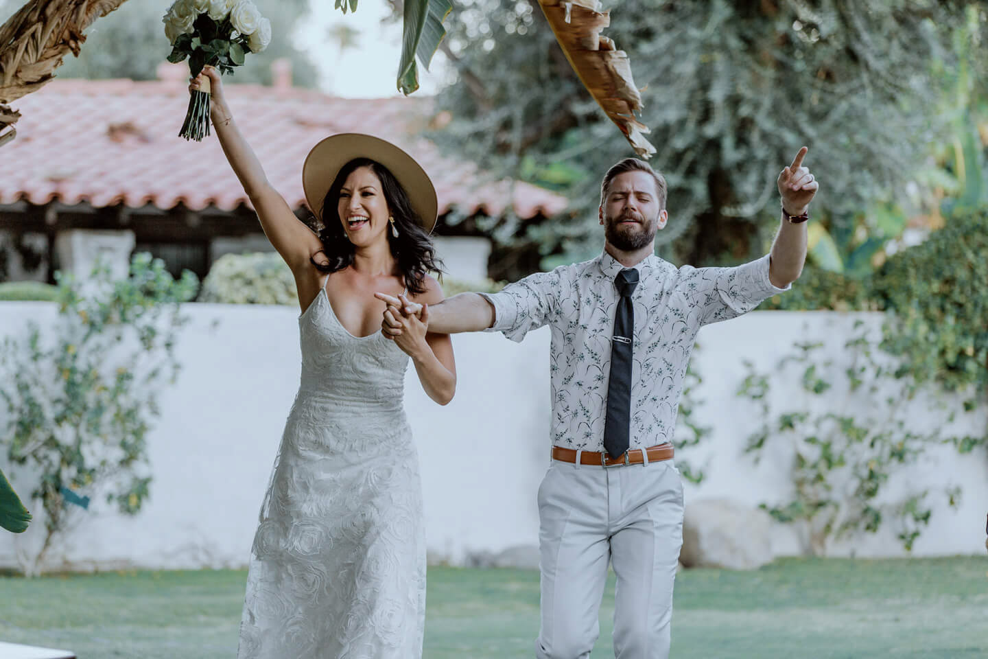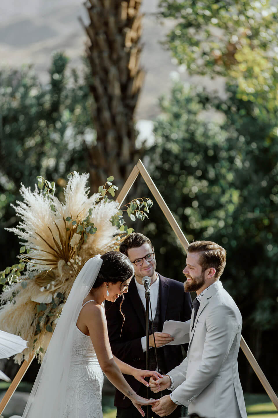 In this Palm Springs wedding, Samantha and Ando held hands while vowing love at their Cree Estate. Their tears streamed and laughs rolled through the air.