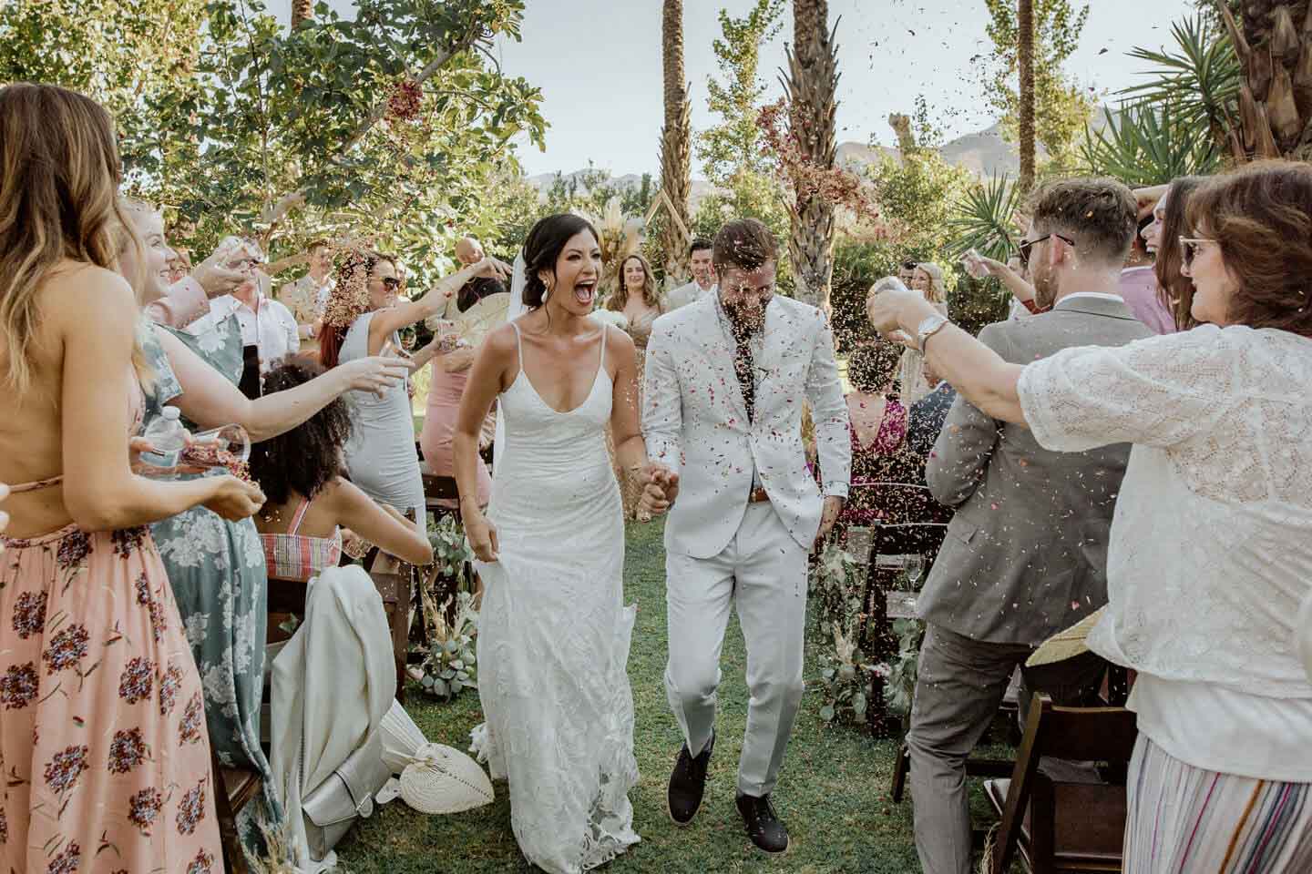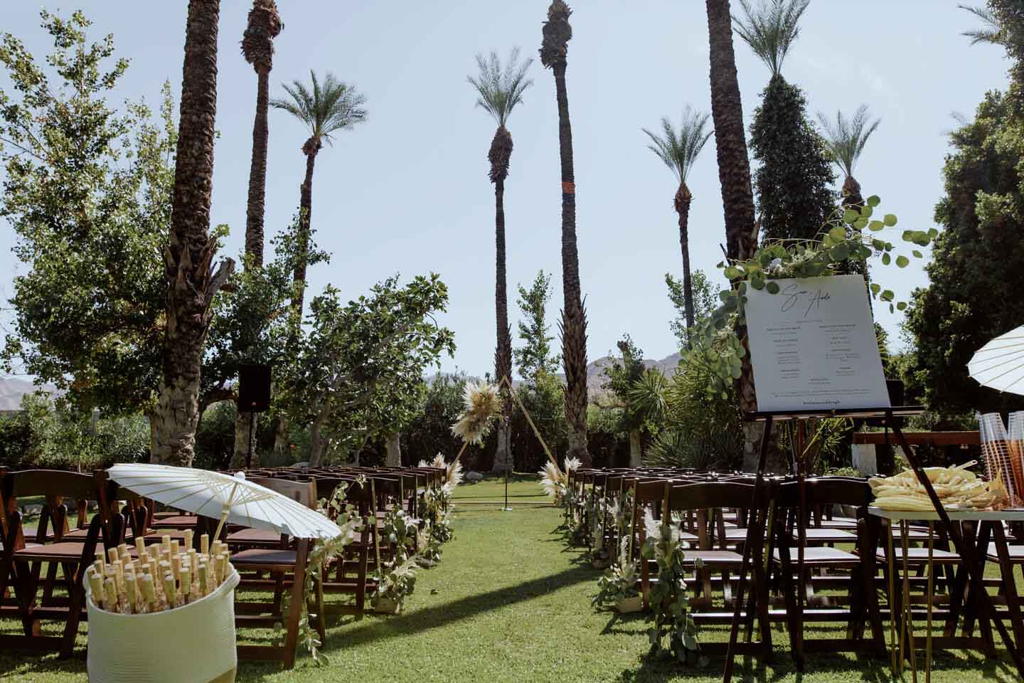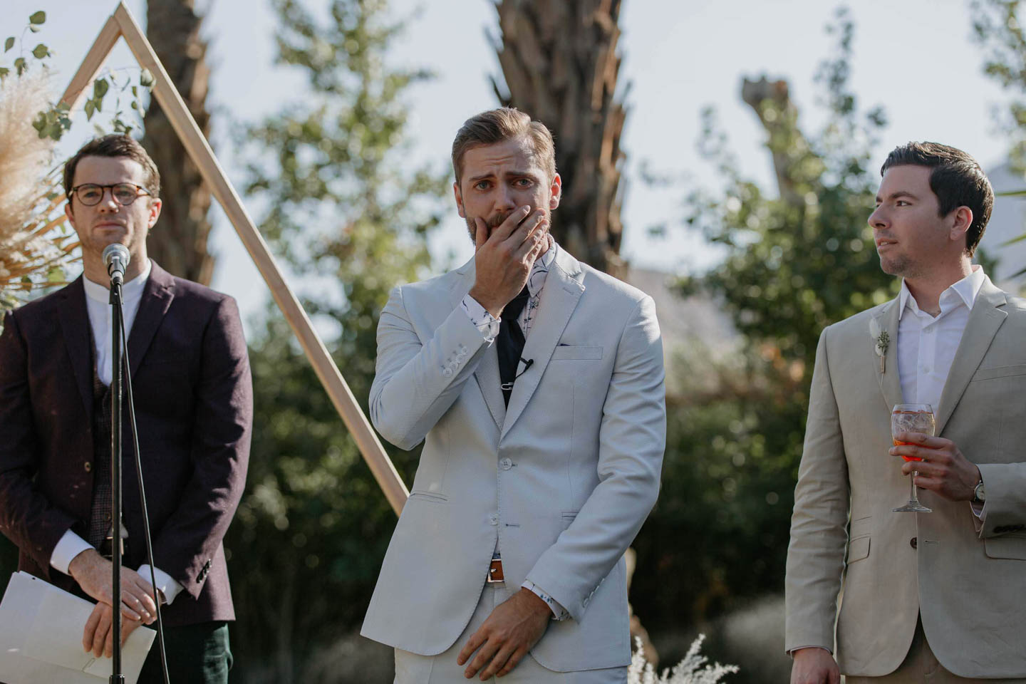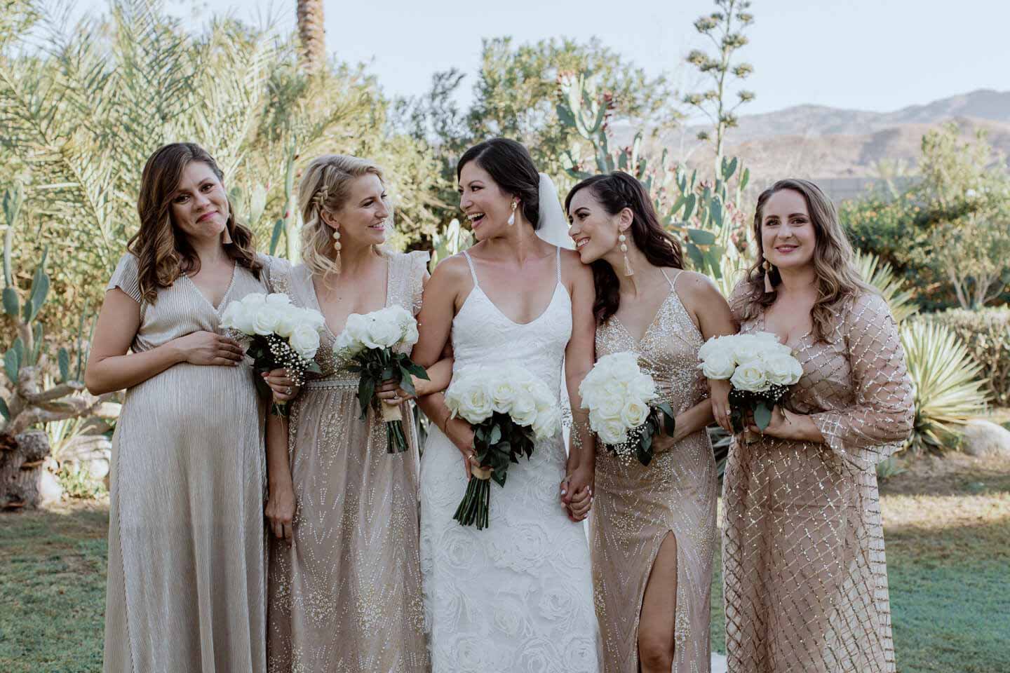 In this Palm Springs wedding, Samantha and Ando held hands while vowing love at their Cree Estate. Their tears streamed and laughs rolled through the air.