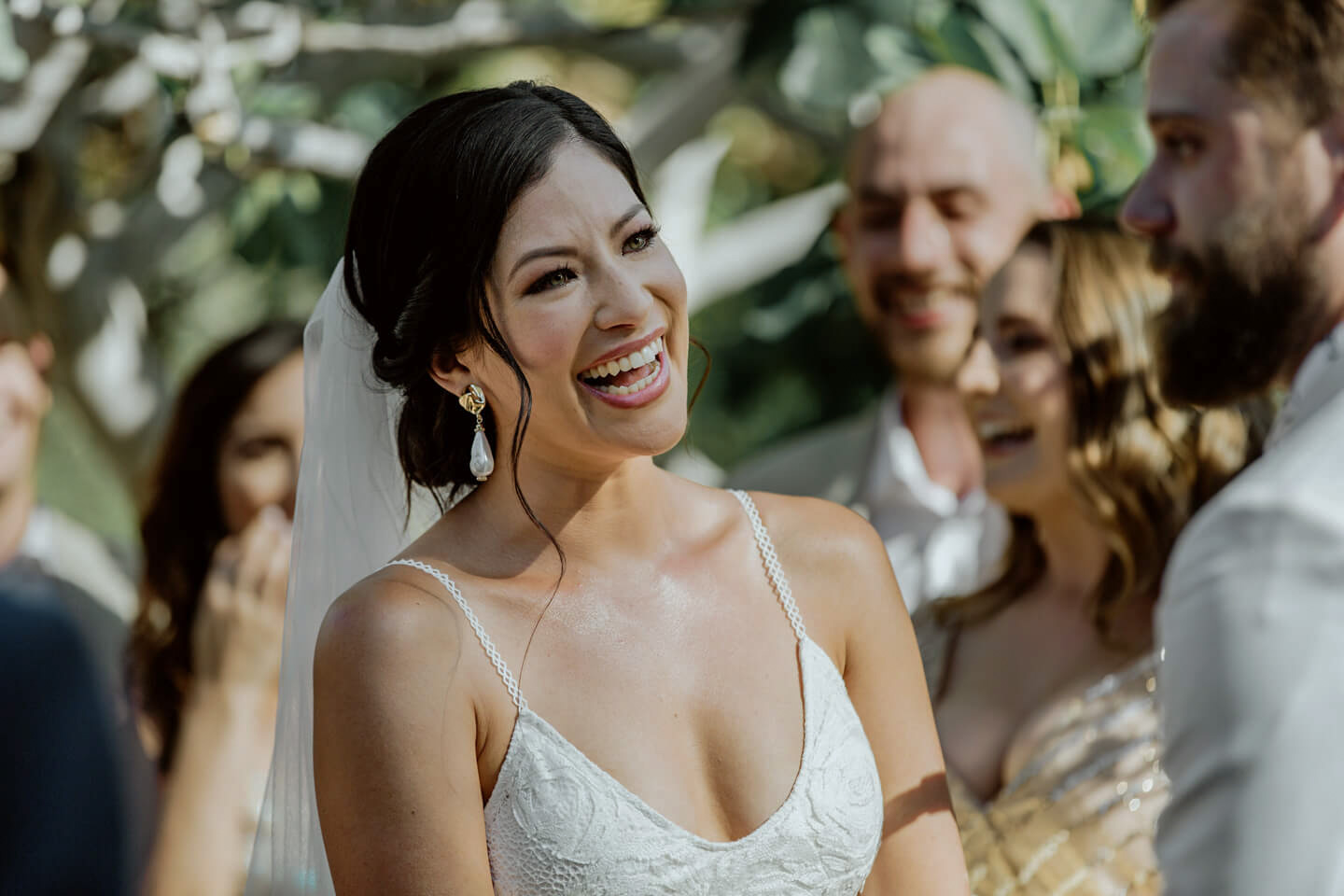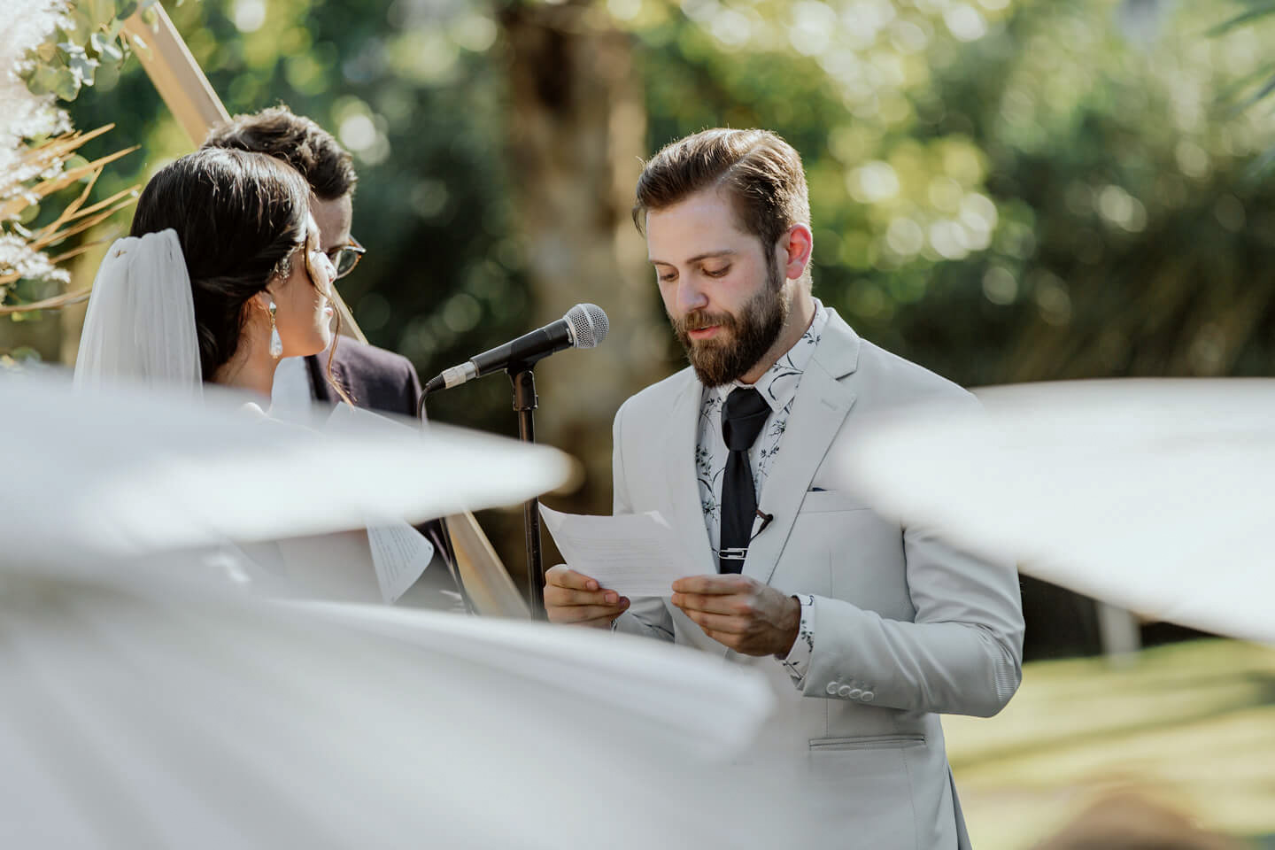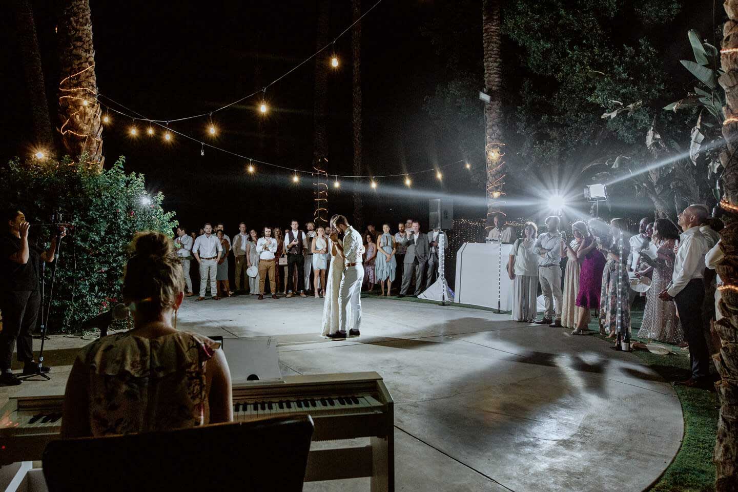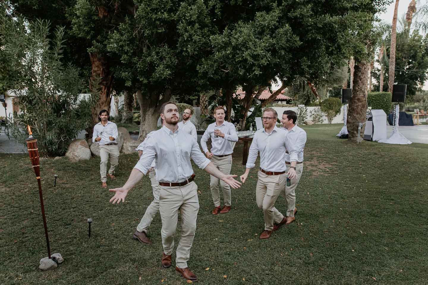 In this Palm Springs wedding, Samantha and Ando held hands while vowing love at their Cree Estate. Their tears streamed and laughs rolled through the air.
