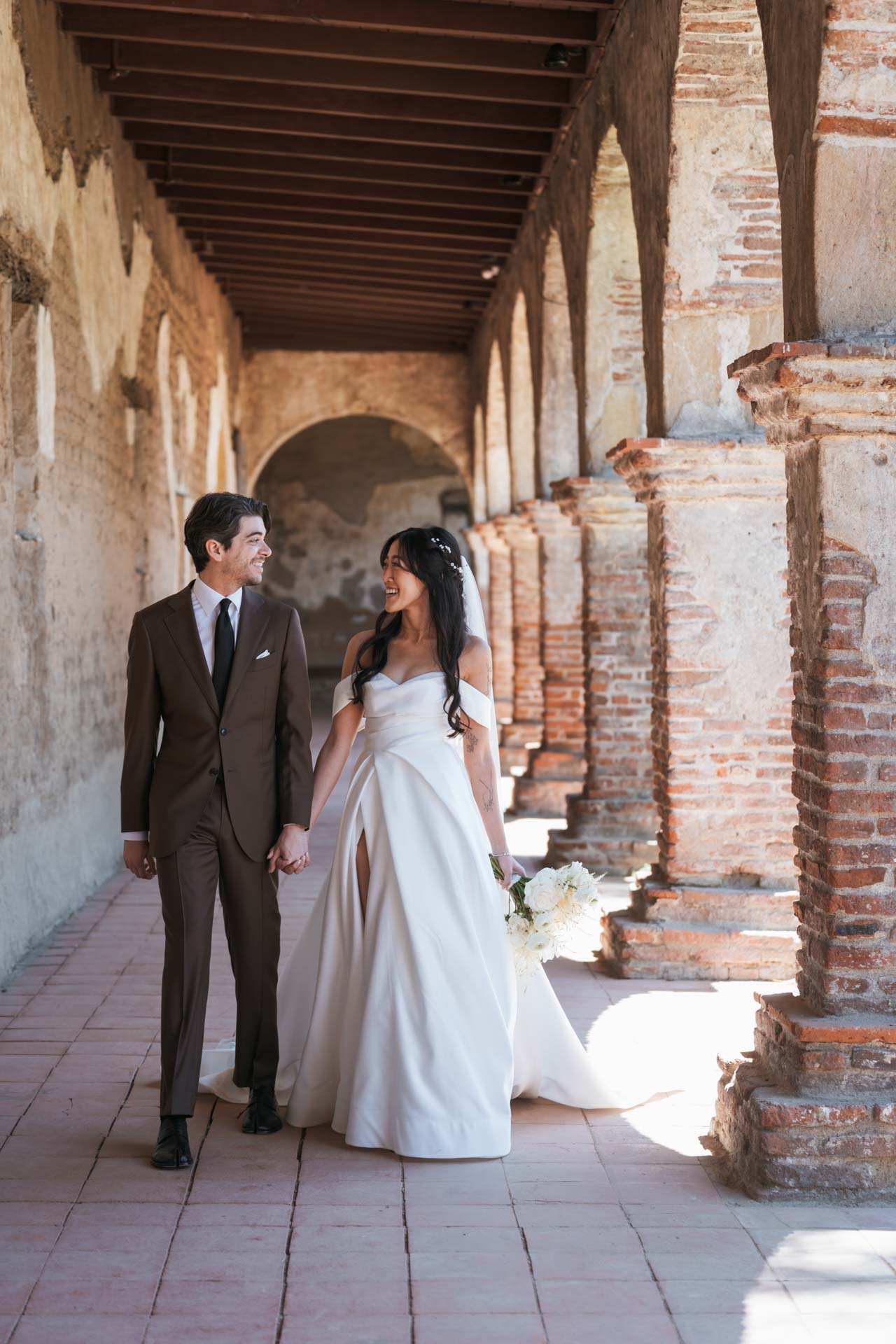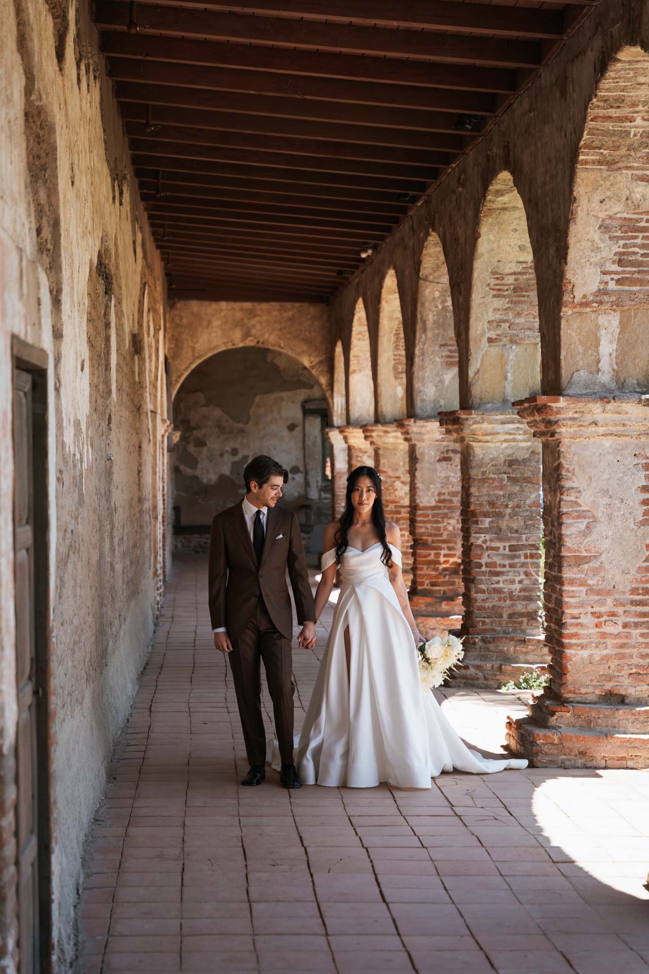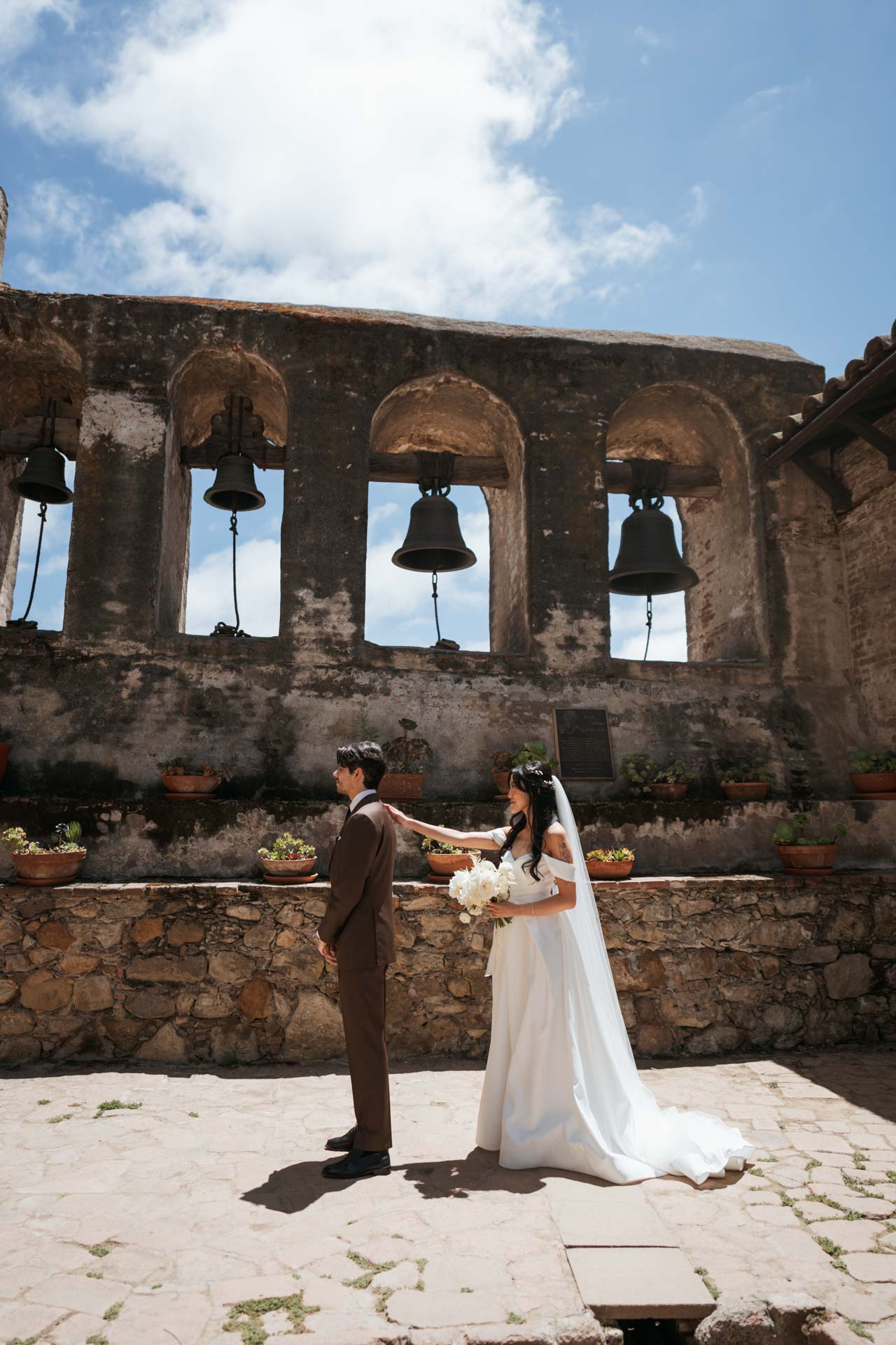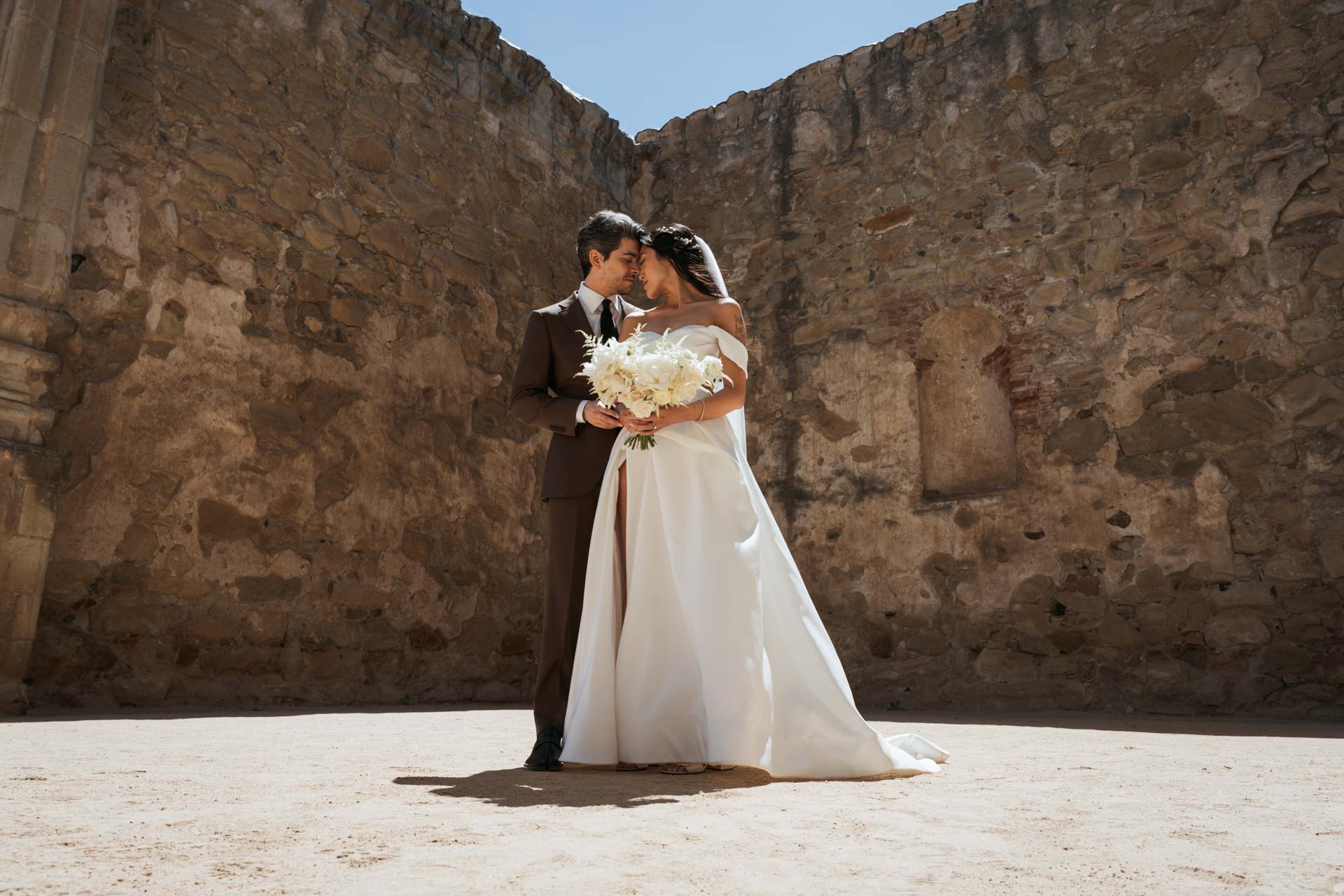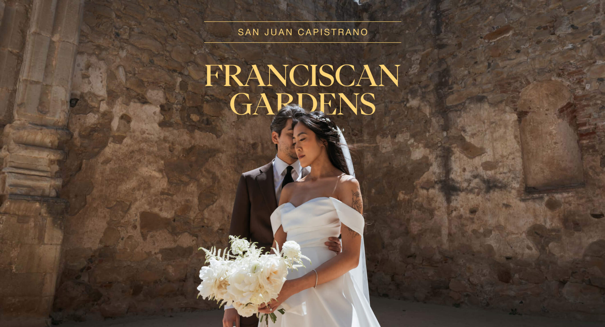 In this San Juan Capistrano wedding, John and Lillian exchanged vows amid the blooming gardens of Franciscan Gardens. Their smiles brightened the day, and the historic charm of the venue set the scene for a romantic celebration.