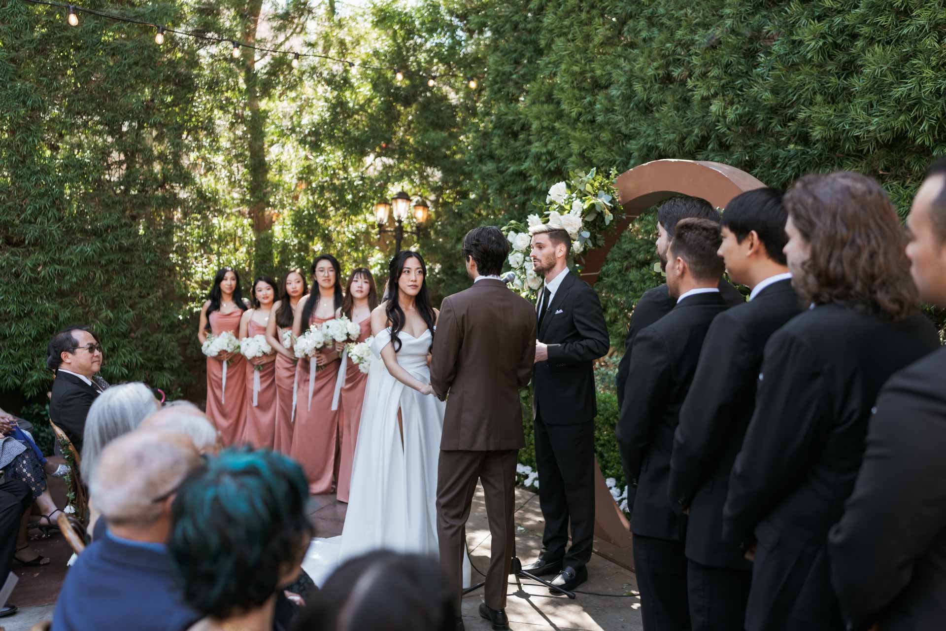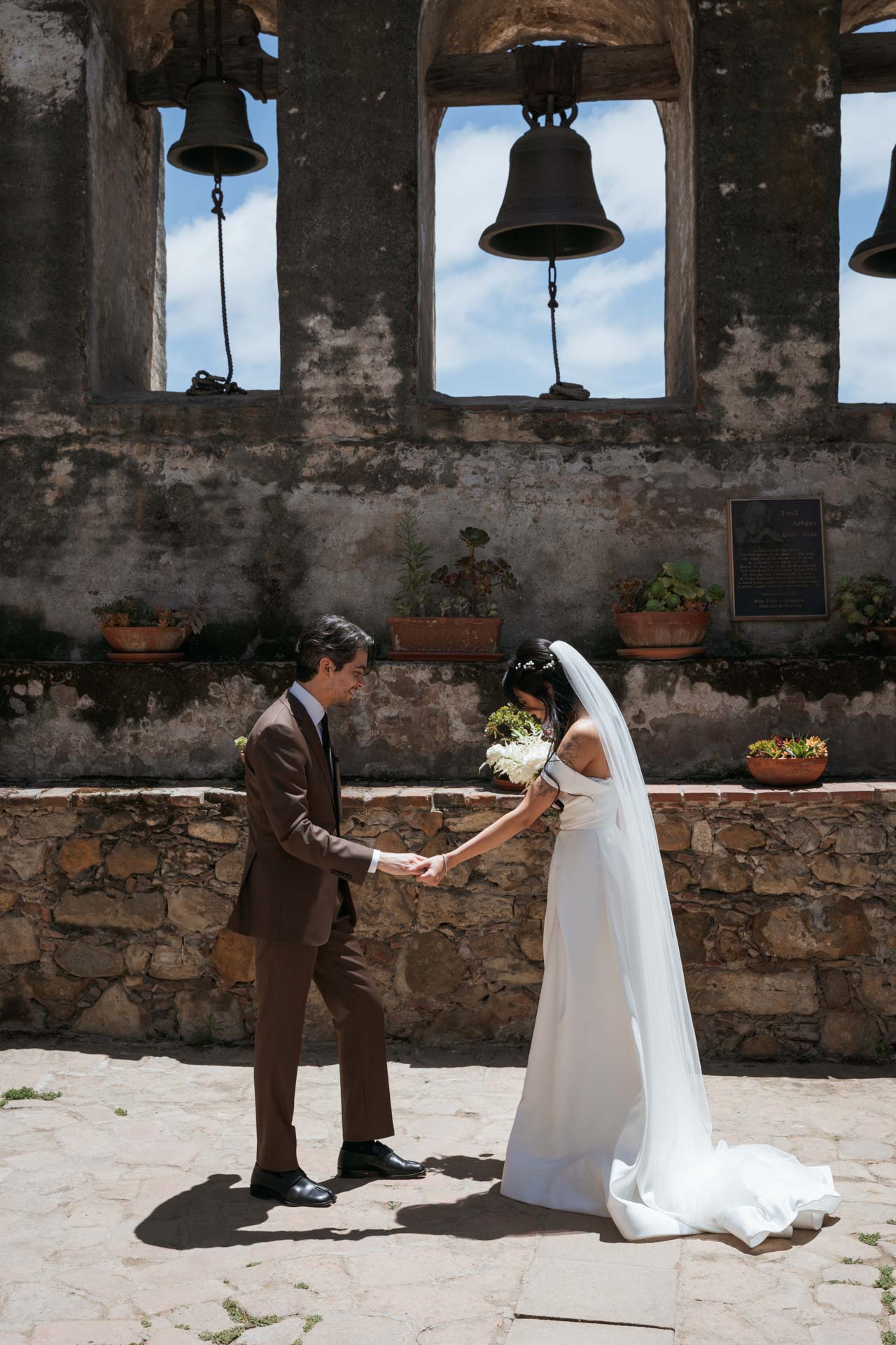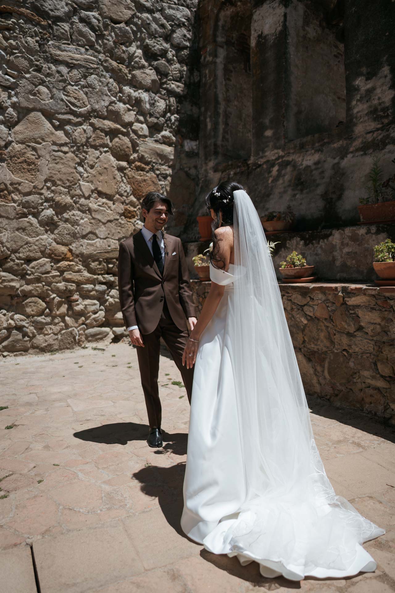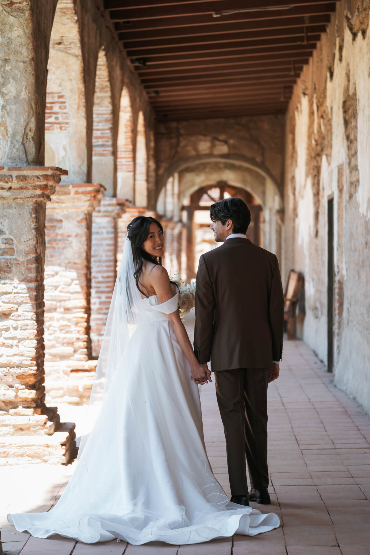 In this San Juan Capistrano wedding, John and Lillian exchanged vows amid the blooming gardens of Franciscan Gardens. Their smiles brightened the day, and the historic charm of the venue set the scene for a romantic celebration.
