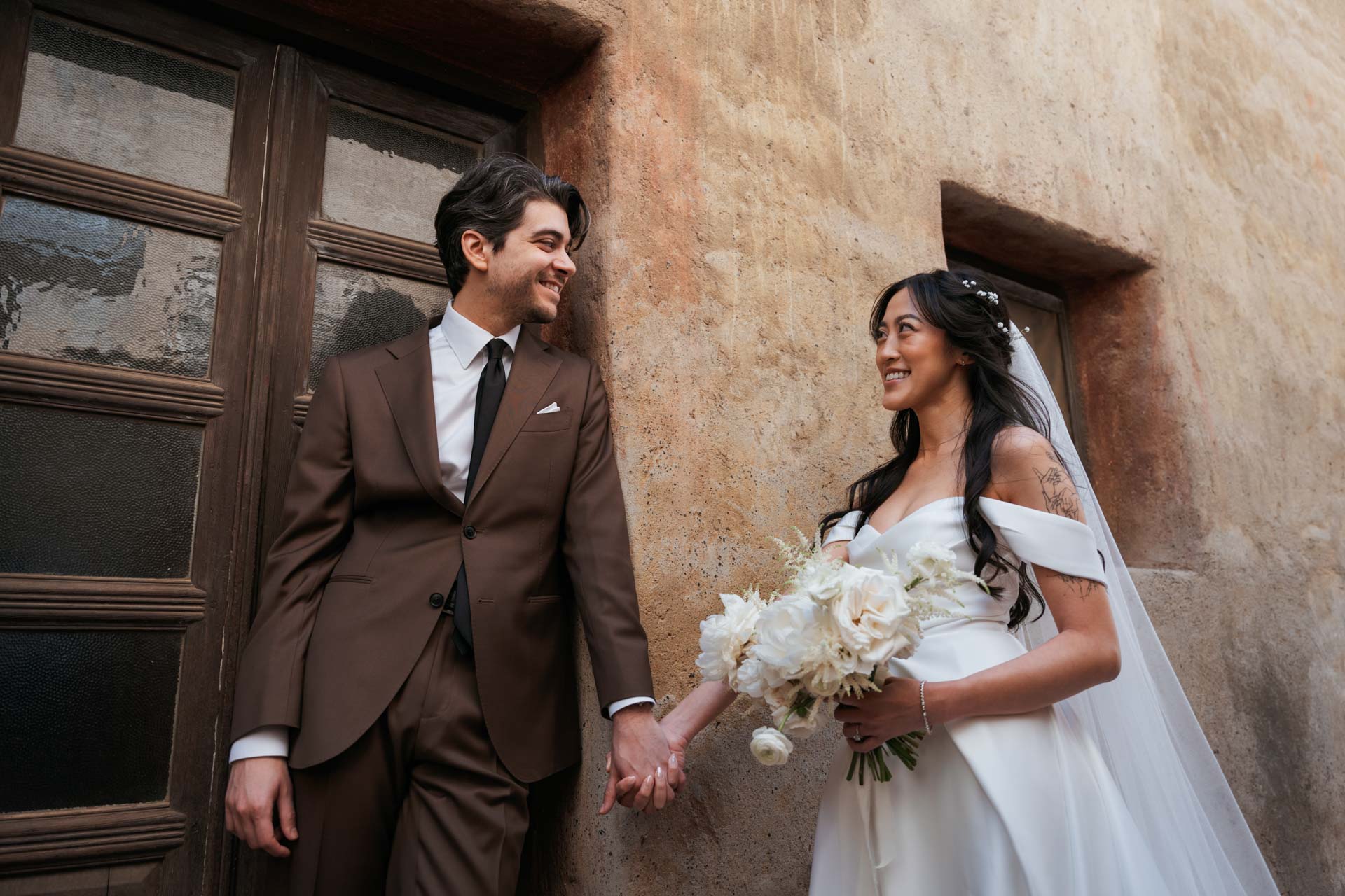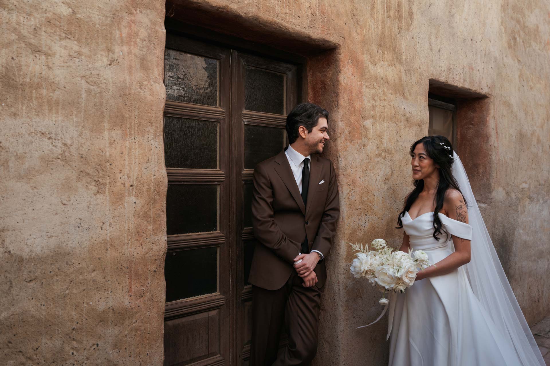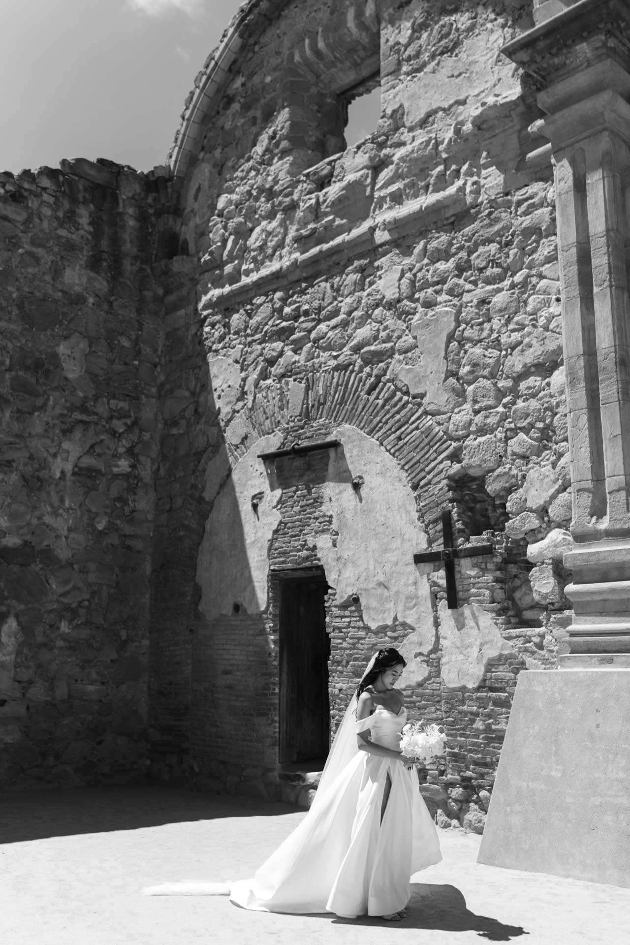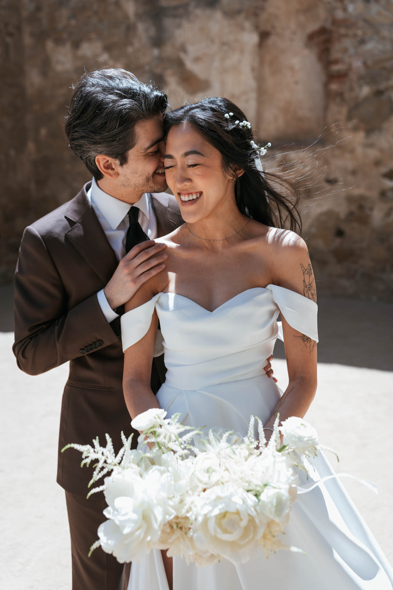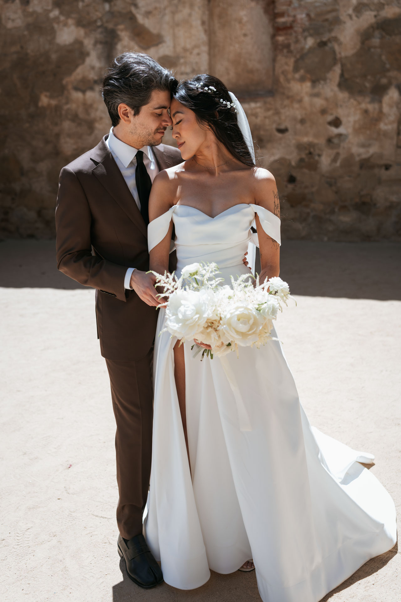 In this San Juan Capistrano wedding, John and Lillian exchanged vows amid the blooming gardens of Franciscan Gardens. Their smiles brightened the day, and the historic charm of the venue set the scene for a romantic celebration.