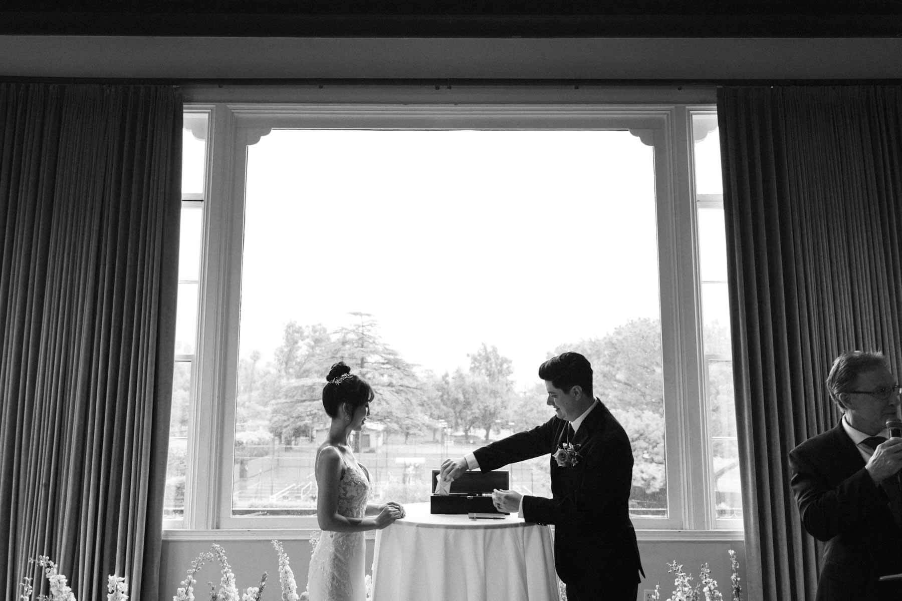 The lush landscapes and elegant architecture of the Altadena Town & Country Club seamlessly complemented the couple’s joyous union, creating a picturesque tableau for their special day.