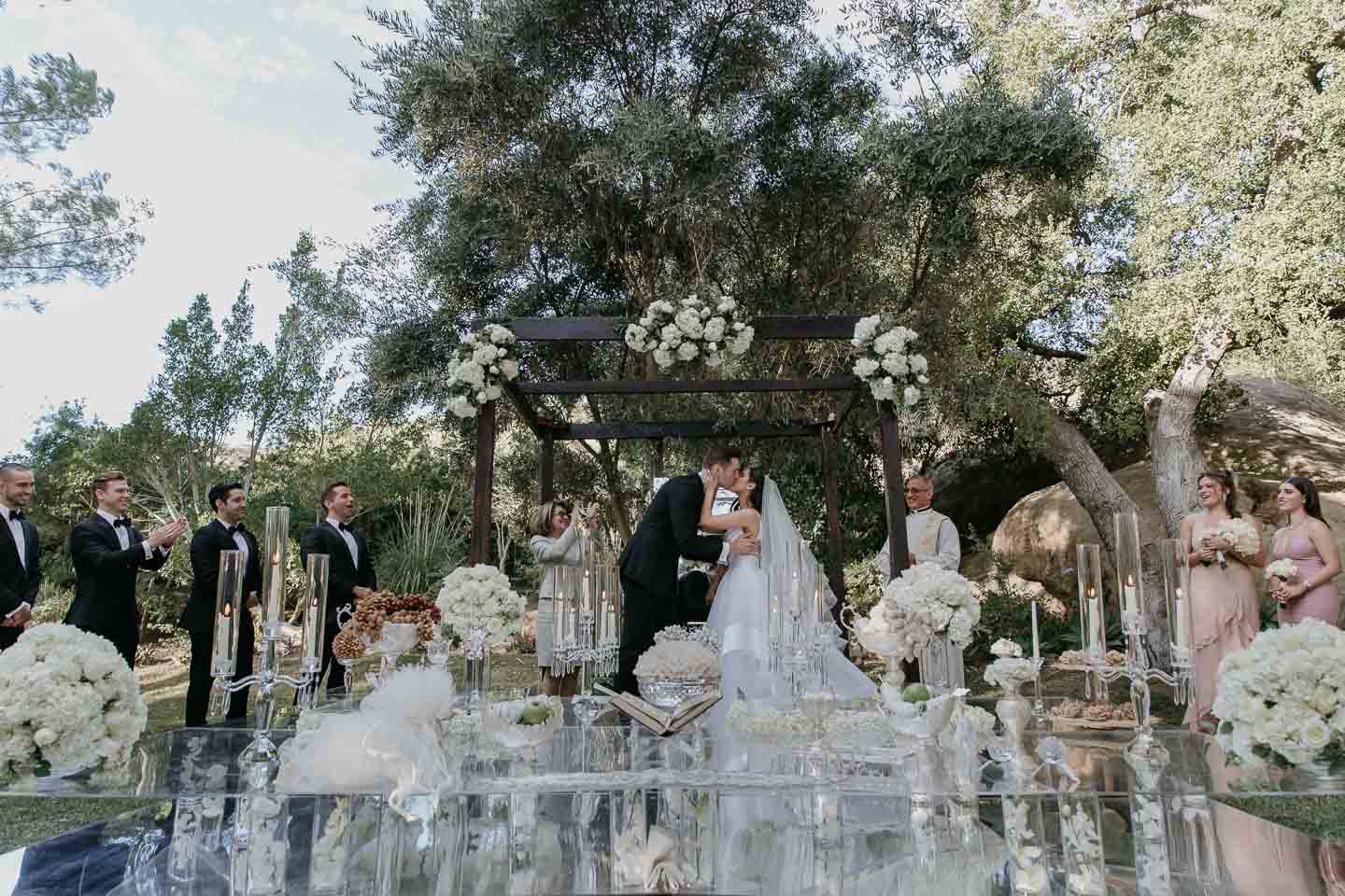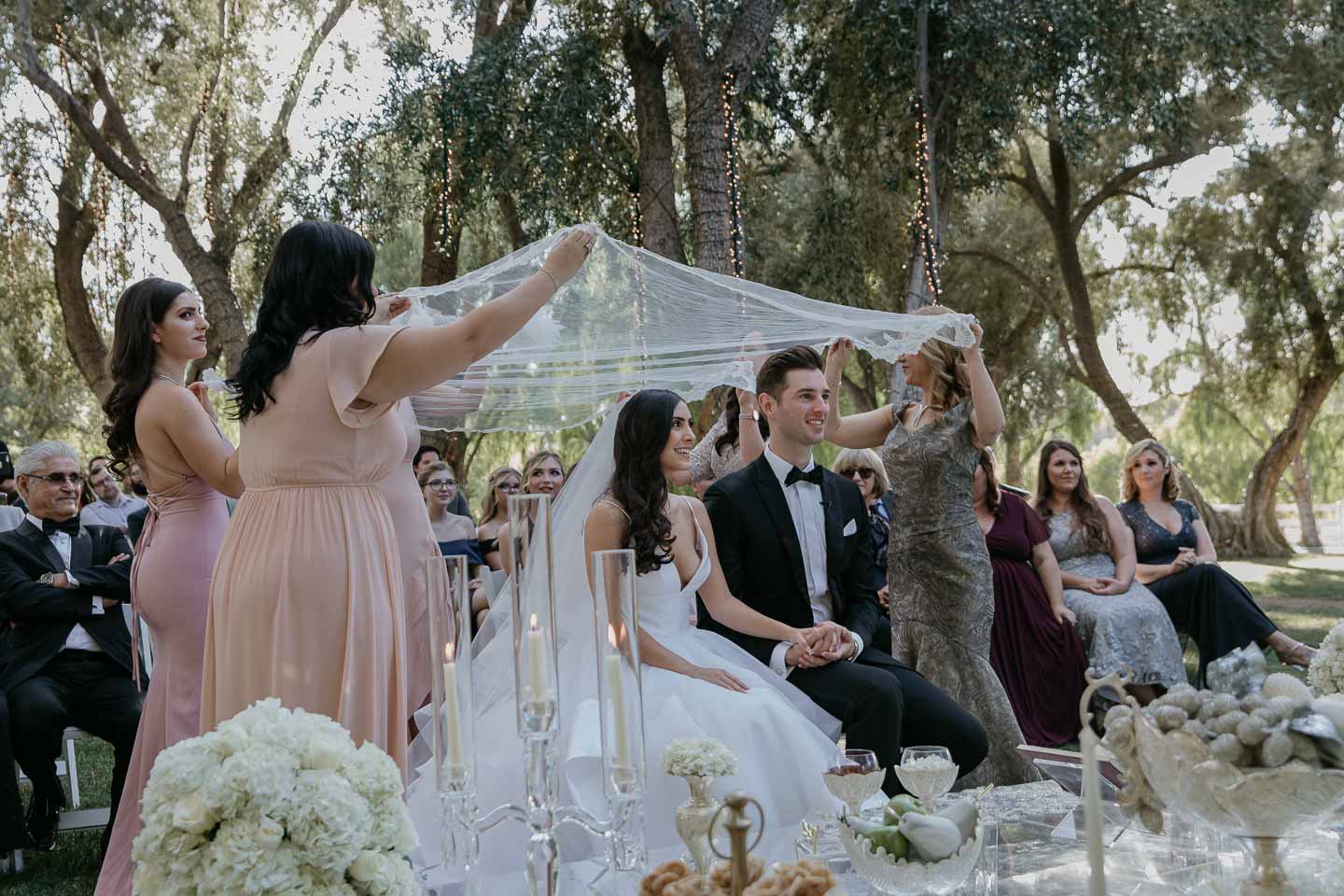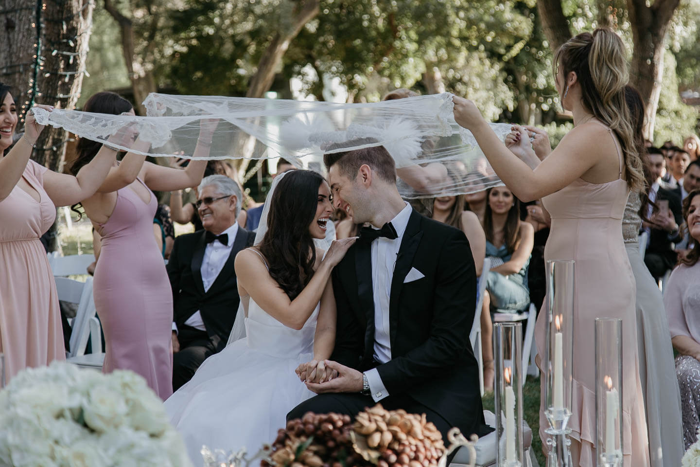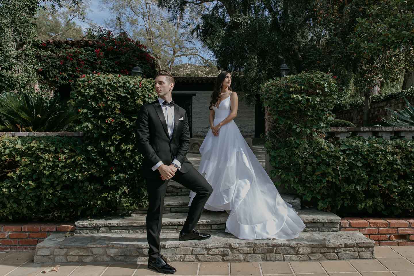 A wedding at the Hummingbird Nest Ranch is one of Simi Valley's hidden gems. Look around at the panoramic Santa Susana Mountains. Bask in the olive trees and sparkling fountains. Put this all together and you have a perfect wedding day. Payvand's chic flowing dress took our breath away, and the wedding guests were one of a kind.