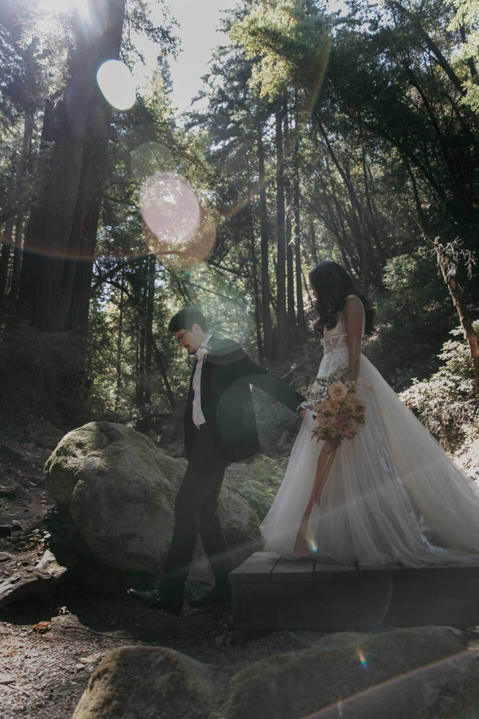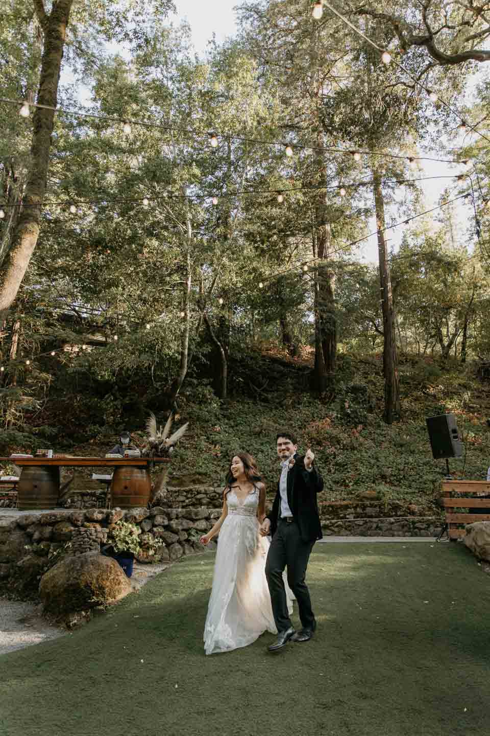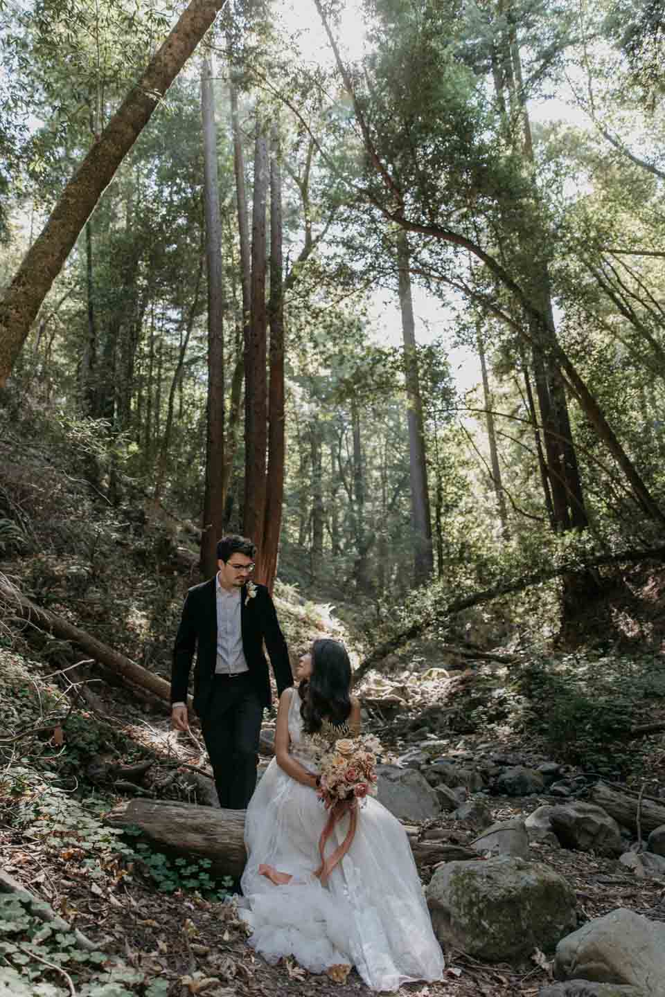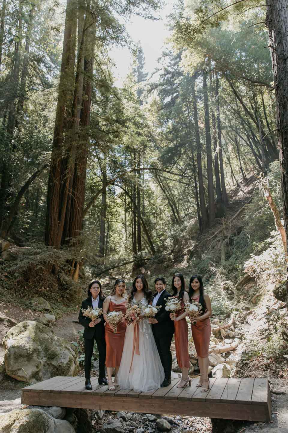 A Saratoga Springs wedding features the Santa Cruz Mountains, towering Redwoods, and flowing creeks. The outdoor wedding of your dreams. Listen to the birds chirp, the trees rustle, and Olivia and Bobby vow their love.