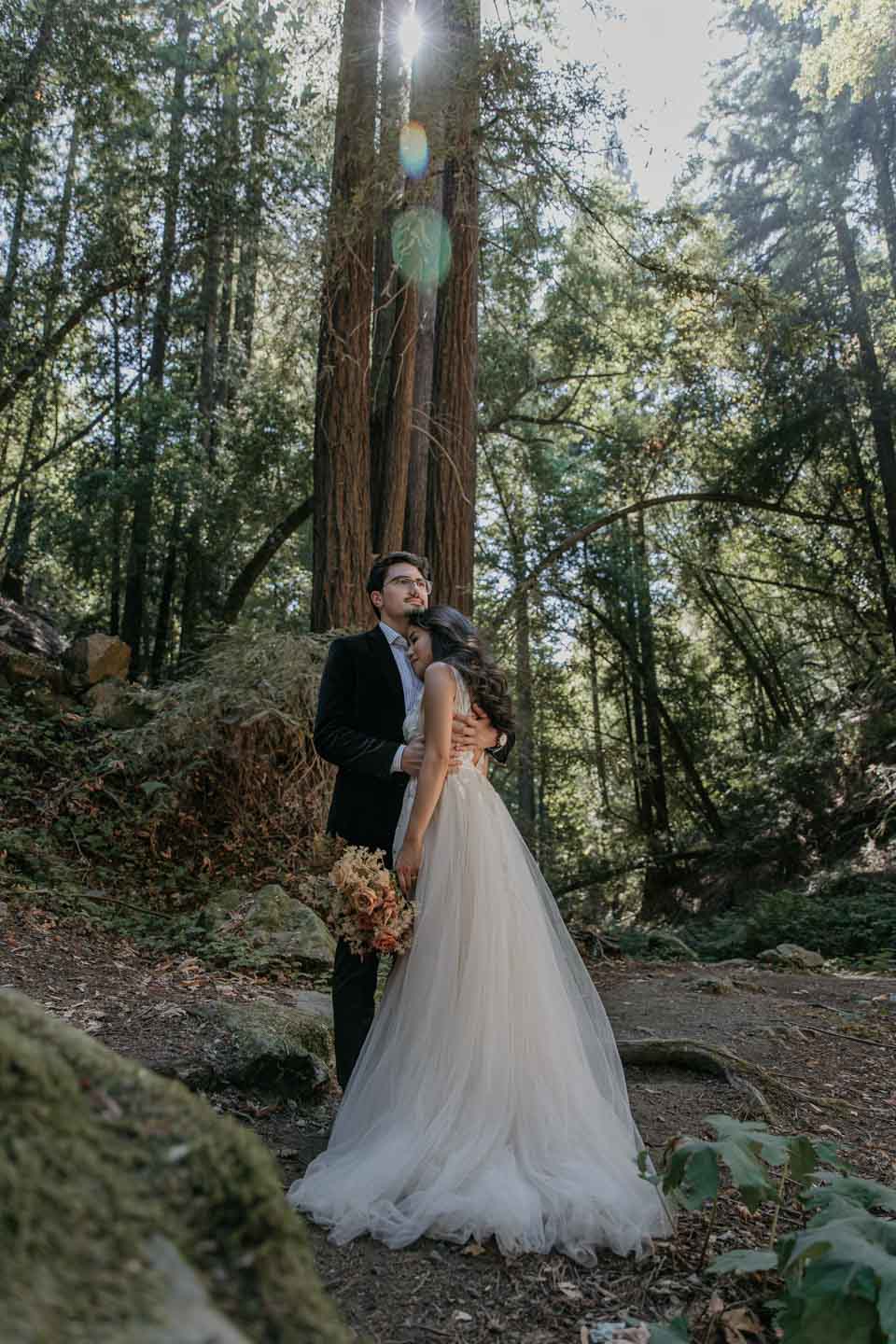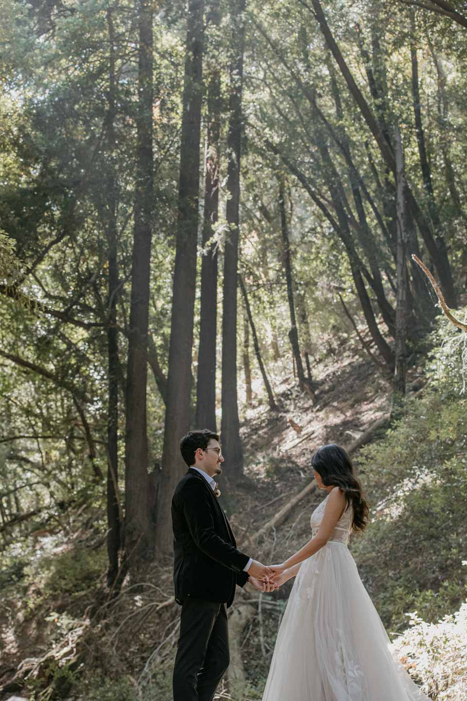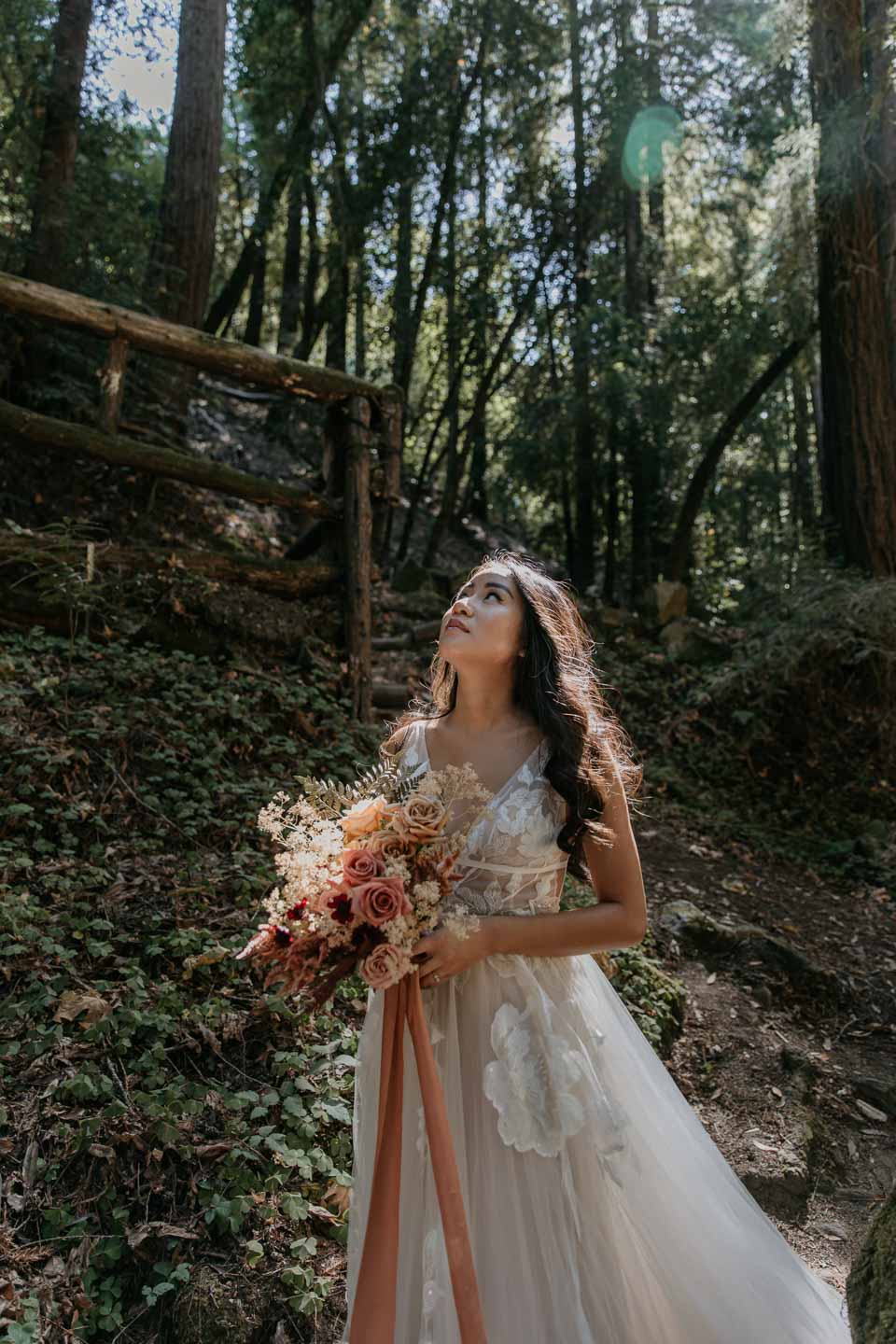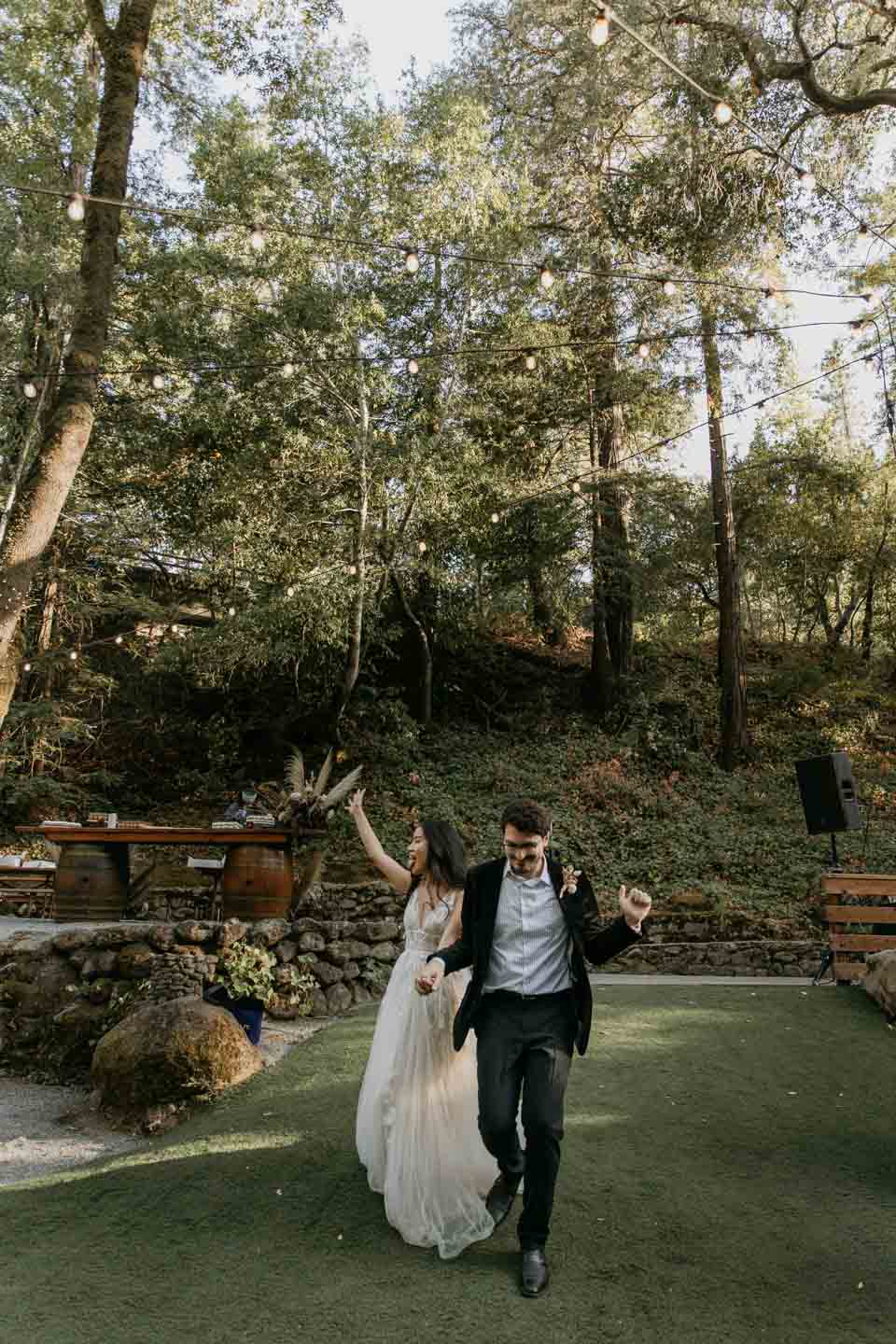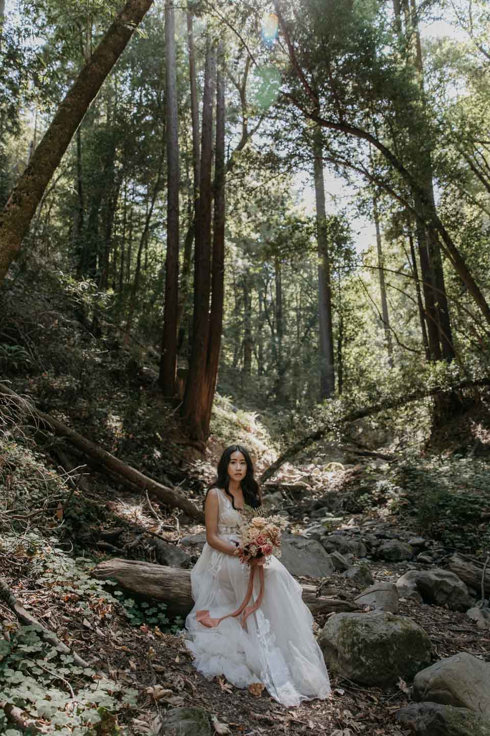 A Saratoga Springs wedding features the Santa Cruz Mountains, towering Redwoods, and flowing creeks. The outdoor wedding of your dreams. Listen to the birds chirp, the trees rustle, and Olivia and Bobby vow their love.