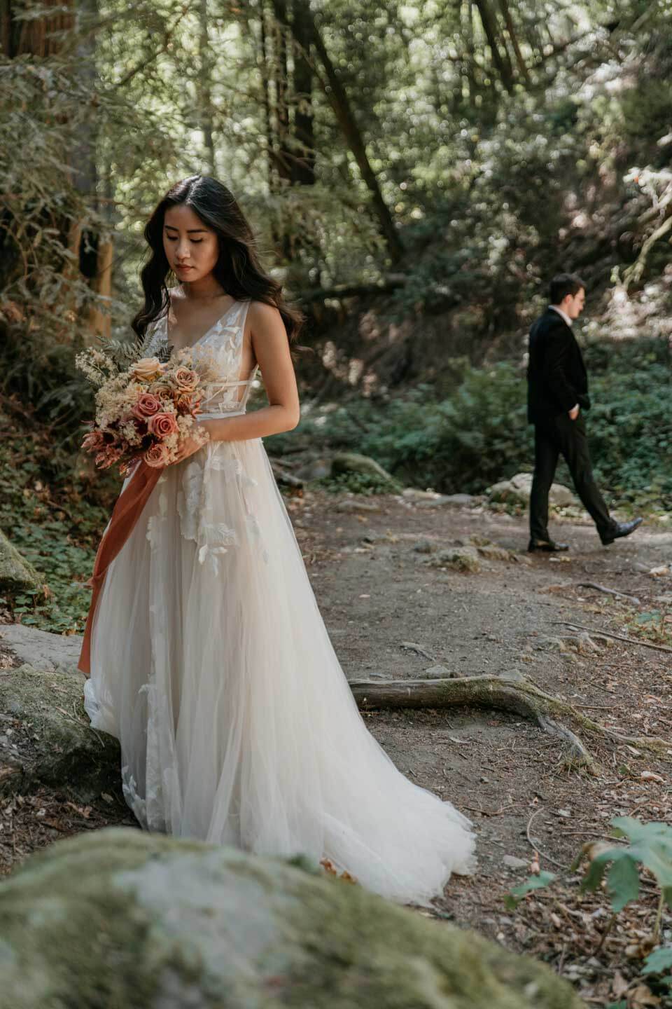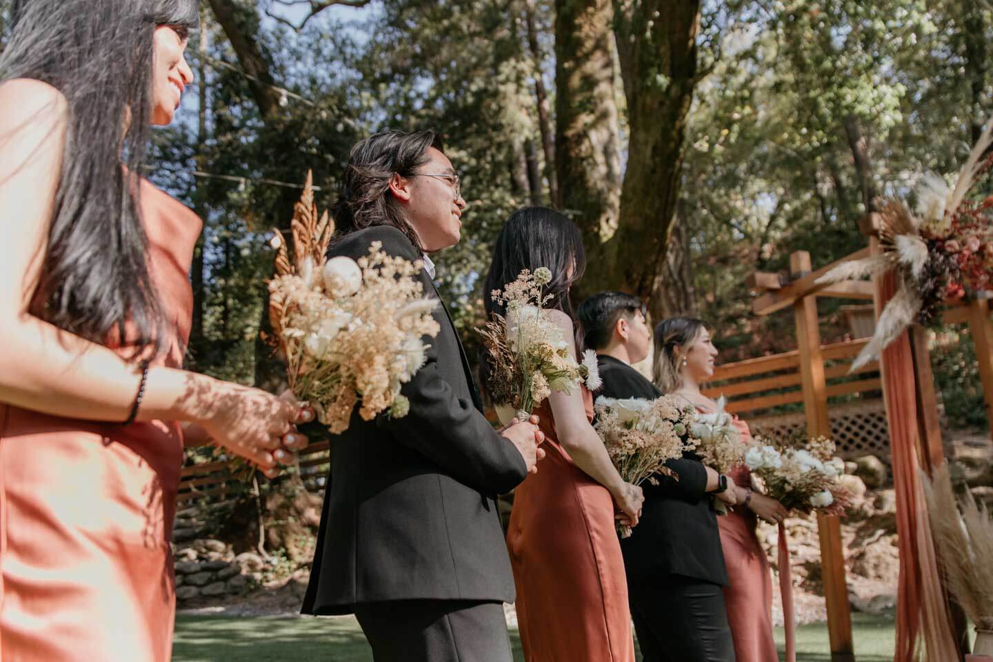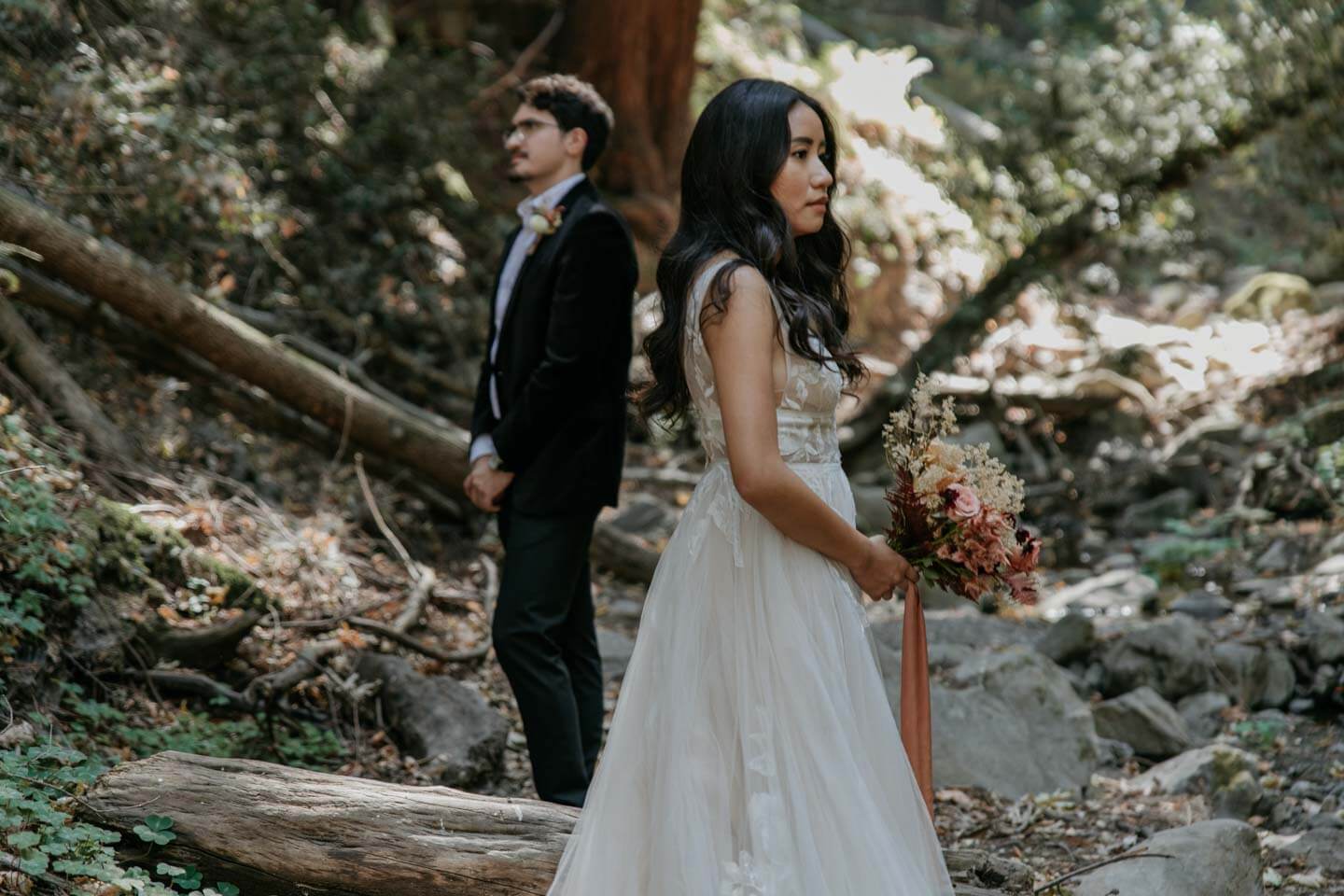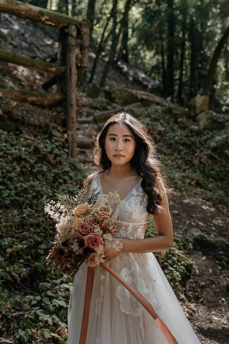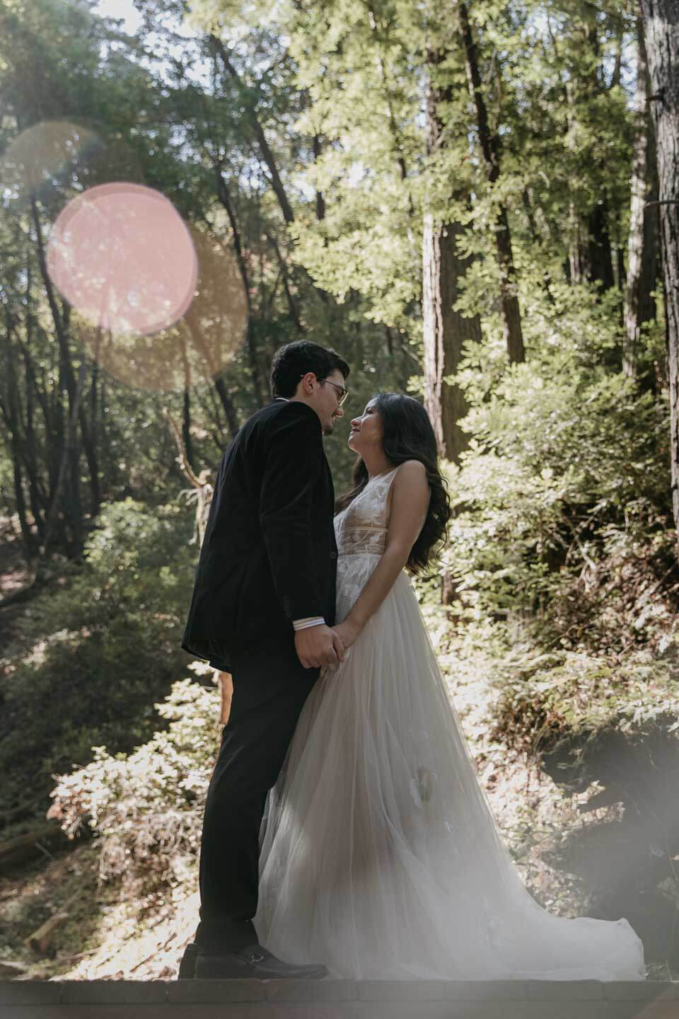 A Saratoga Springs wedding features the Santa Cruz Mountains, towering Redwoods, and flowing creeks. The outdoor wedding of your dreams. Listen to the birds chirp, the trees rustle, and Olivia and Bobby vow their love.