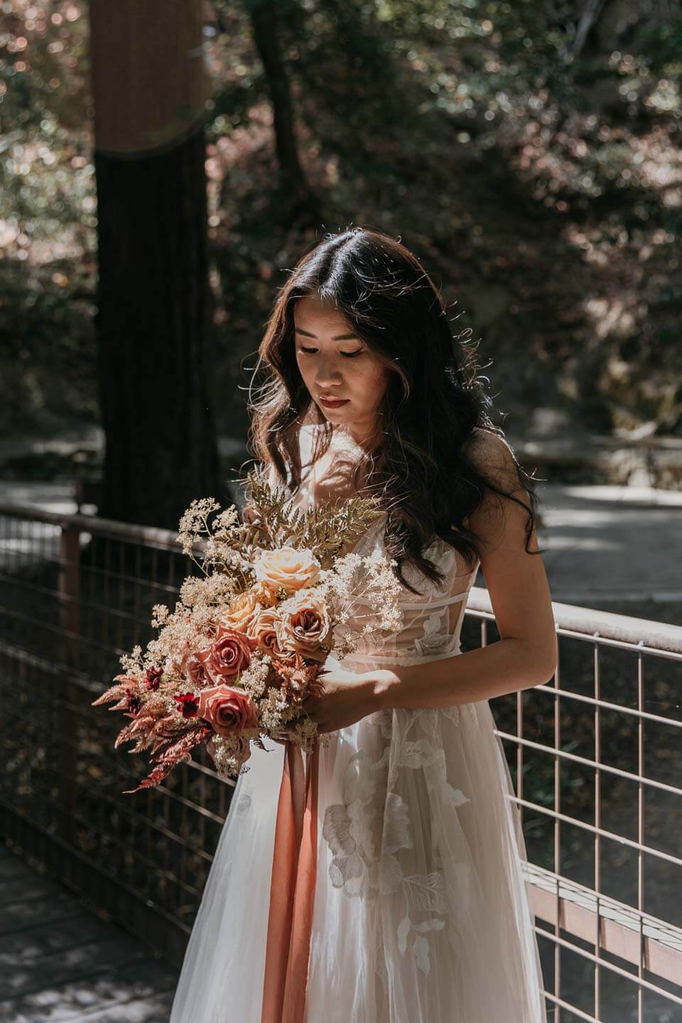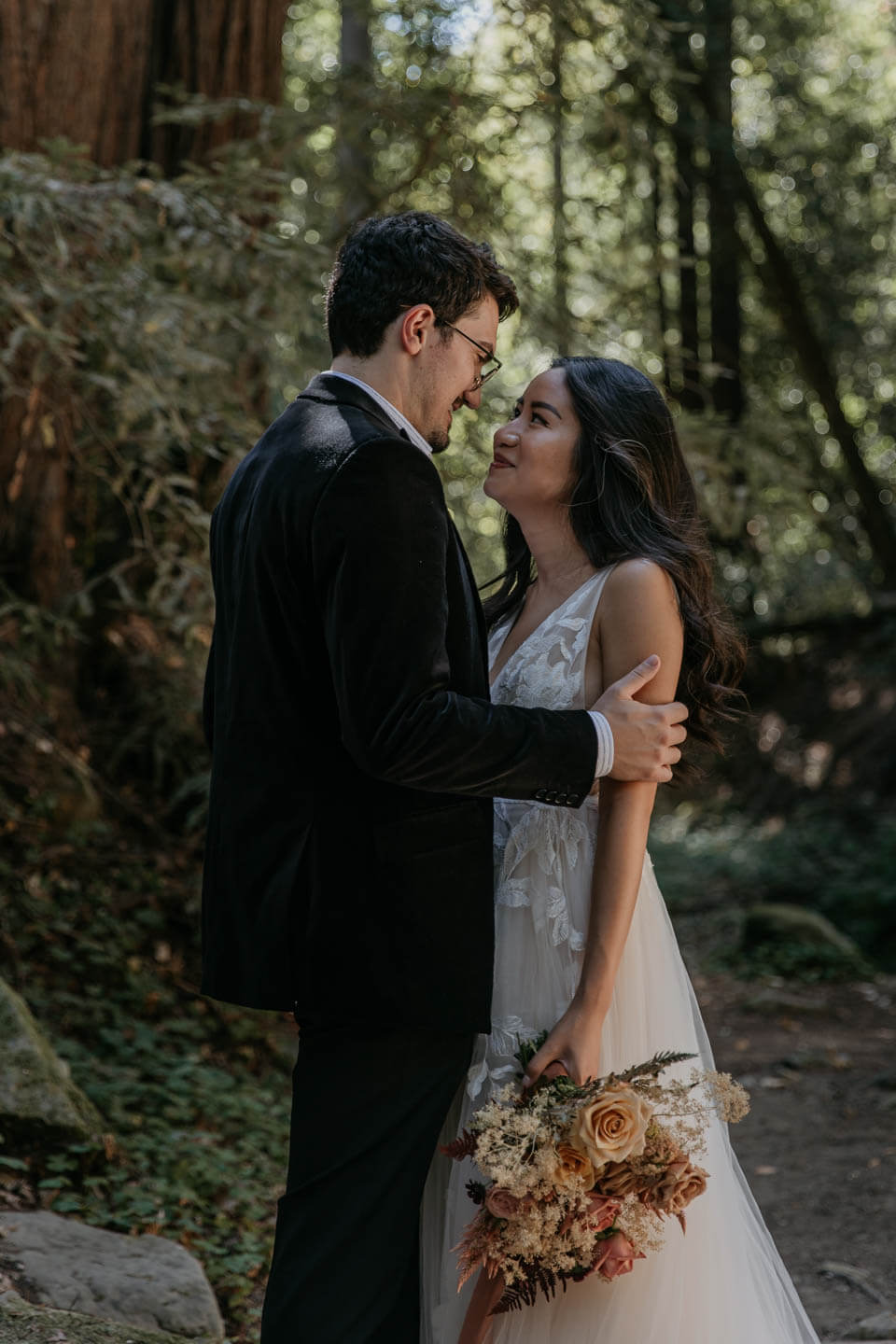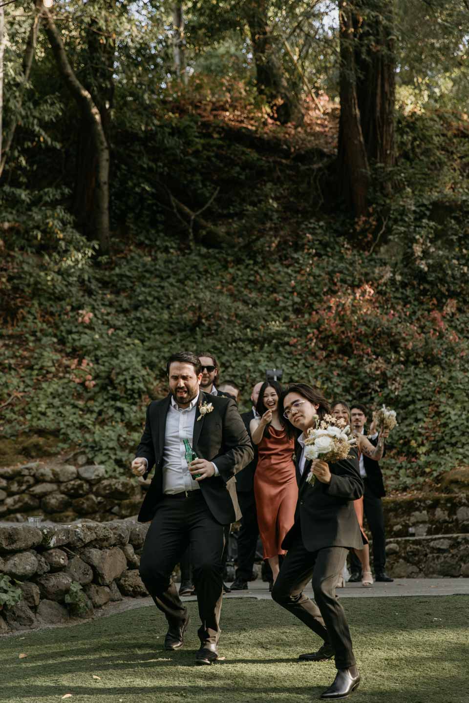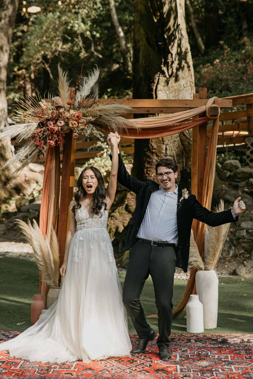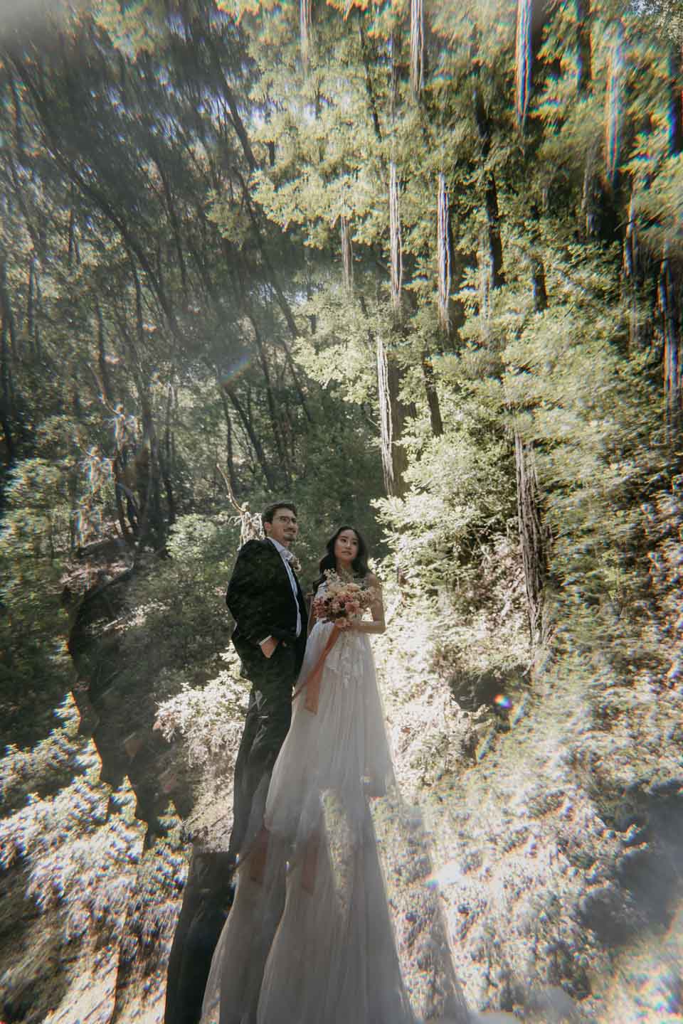 A Saratoga Springs wedding features the Santa Cruz Mountains, towering Redwoods, and flowing creeks. The outdoor wedding of your dreams. Listen to the birds chirp, the trees rustle, and Olivia and Bobby vow their love.