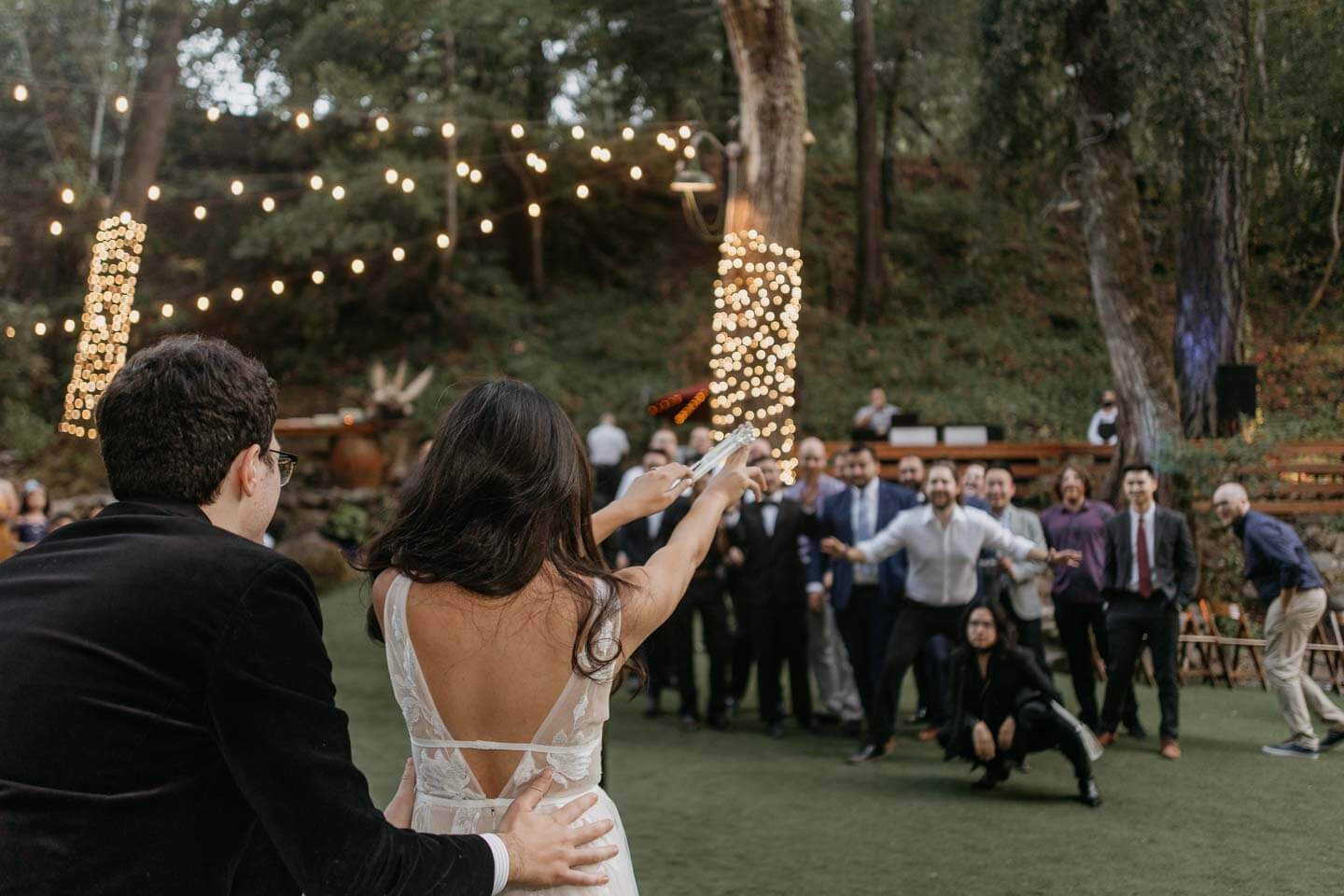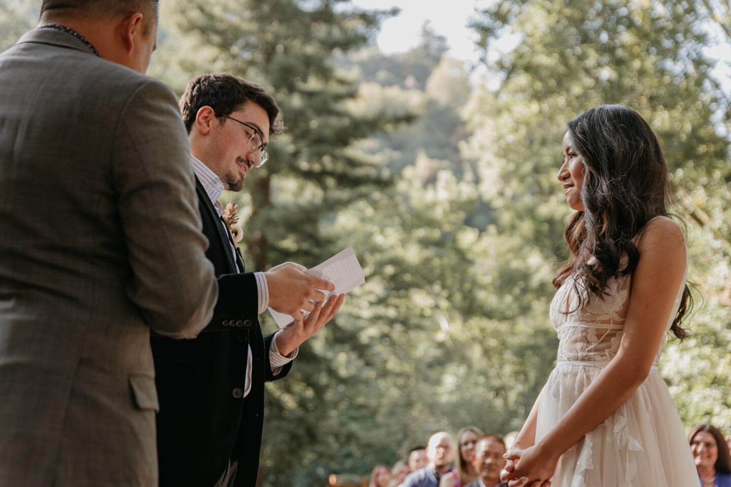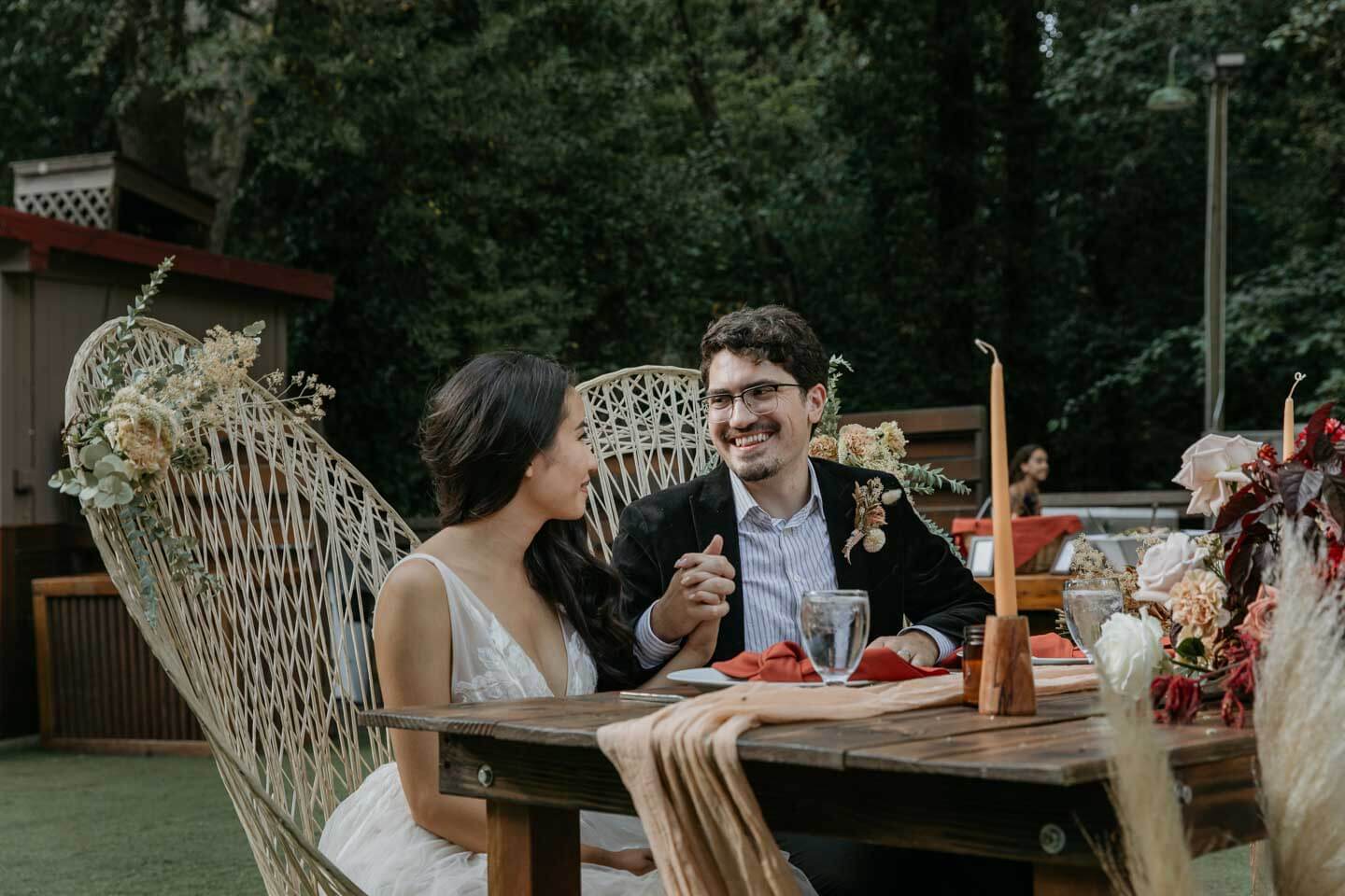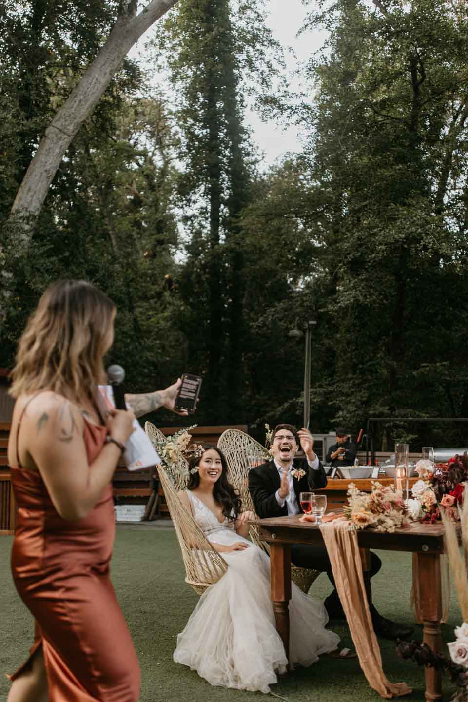 A Saratoga Springs wedding features the Santa Cruz Mountains, towering Redwoods, and flowing creeks. The outdoor wedding of your dreams. Listen to the birds chirp, the trees rustle, and Olivia and Bobby vow their love.
