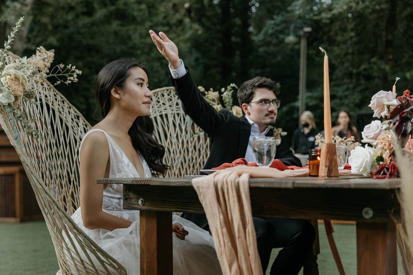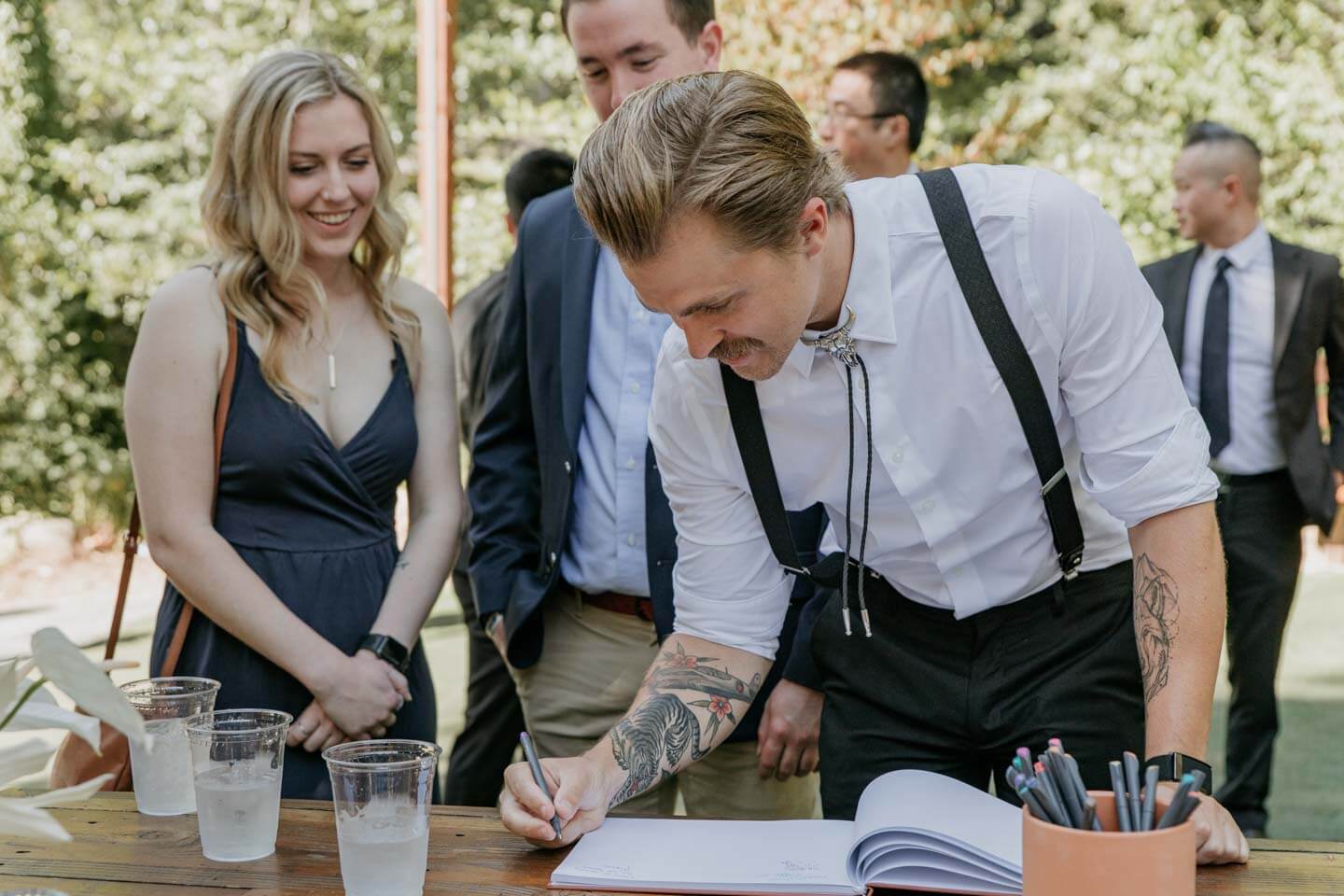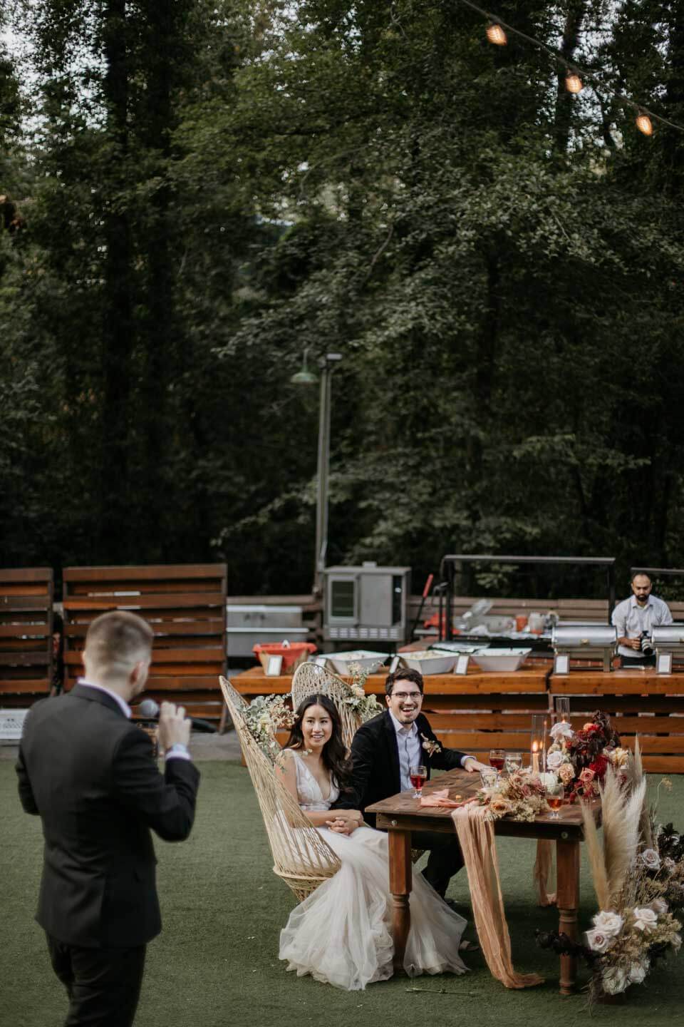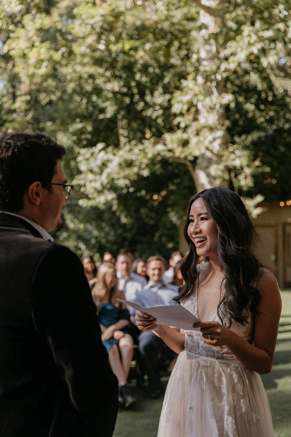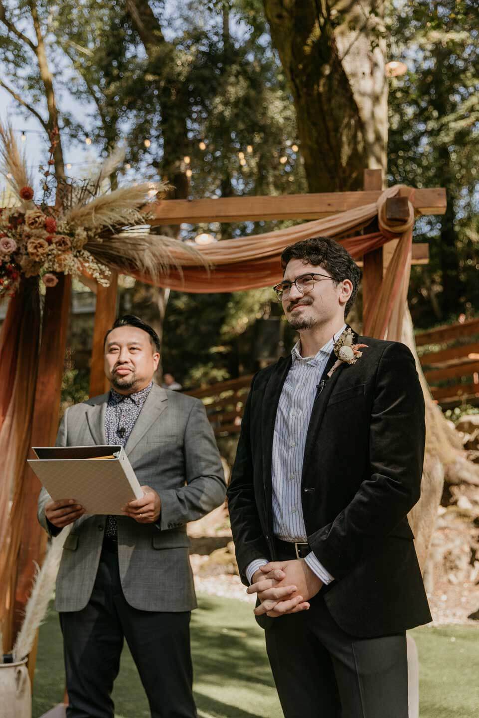 A Saratoga Springs wedding features the Santa Cruz Mountains, towering Redwoods, and flowing creeks. The outdoor wedding of your dreams. Listen to the birds chirp, the trees rustle, and Olivia and Bobby vow their love.