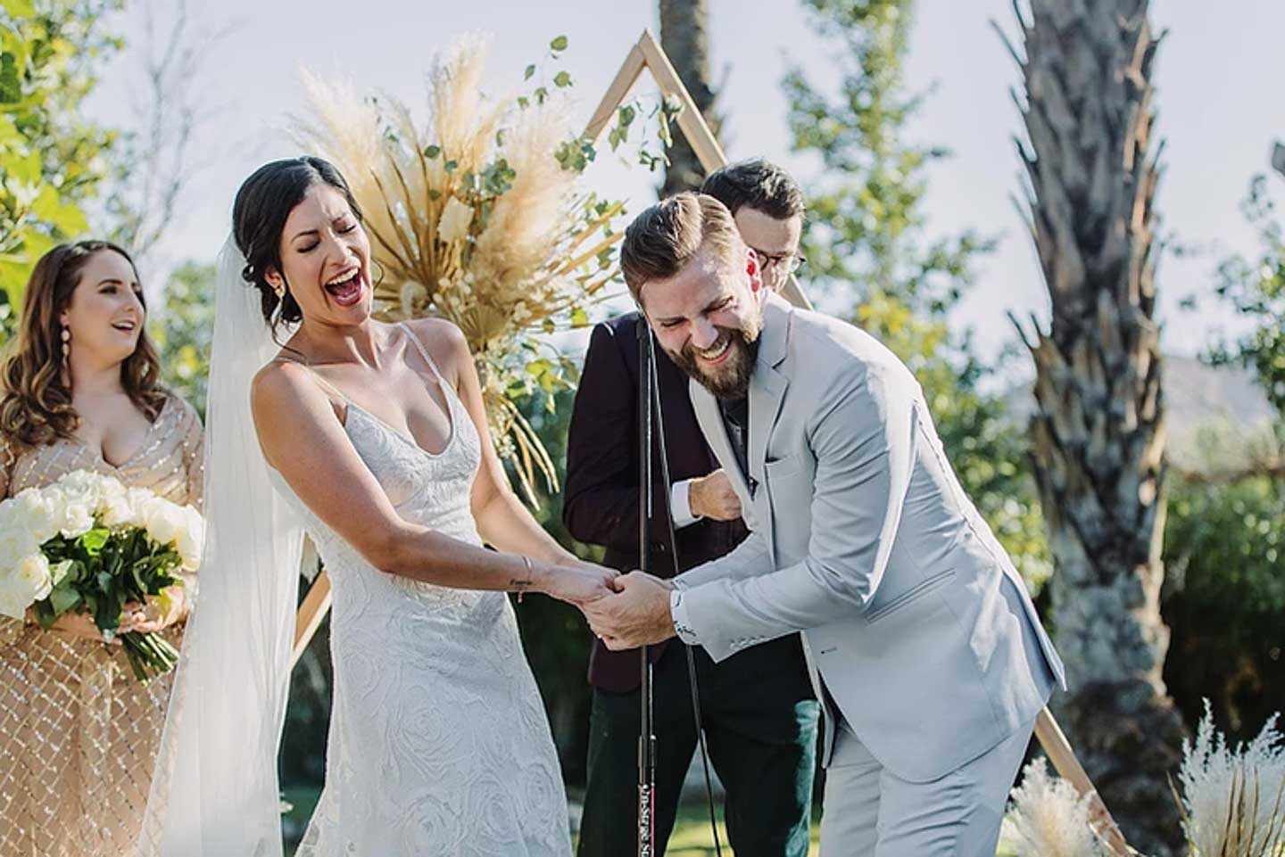 This Palm Springs wedding took place at the Cree Estate, where Sam and Ando held hands and vowed their love to one another.