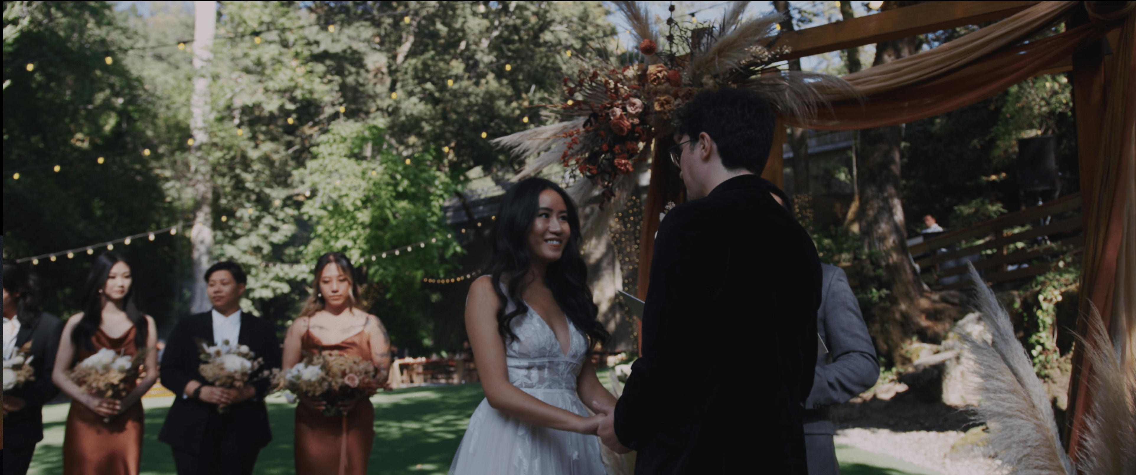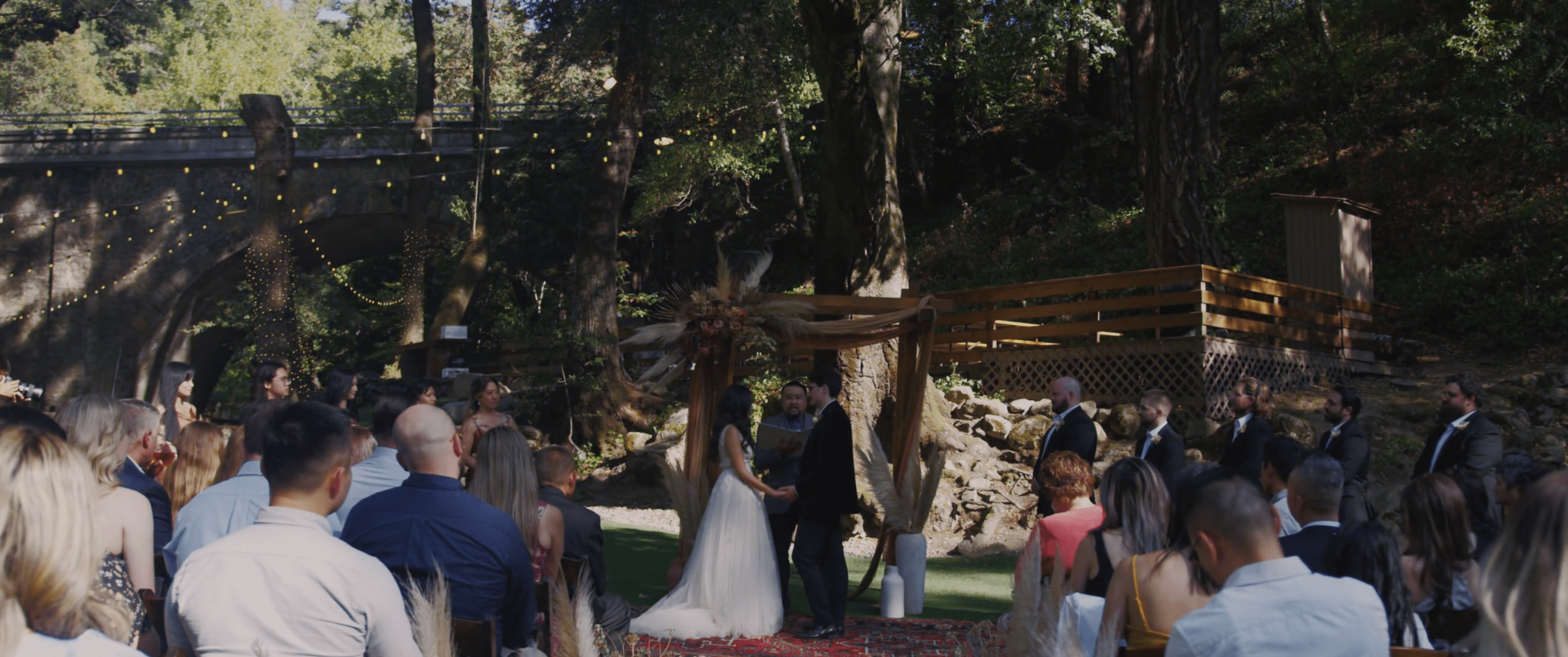 A Saratoga Springs wedding features the Santa Cruz Mountains, towering Redwoods, and flowing creeks. The outdoor wedding of your dreams. Listen to the birds chirp, the trees rustle, and Olivia and Bobby vow their love.