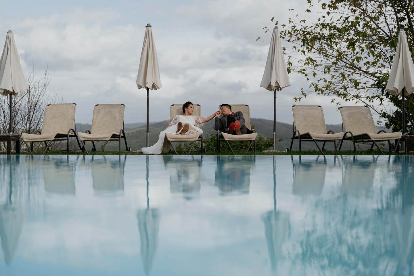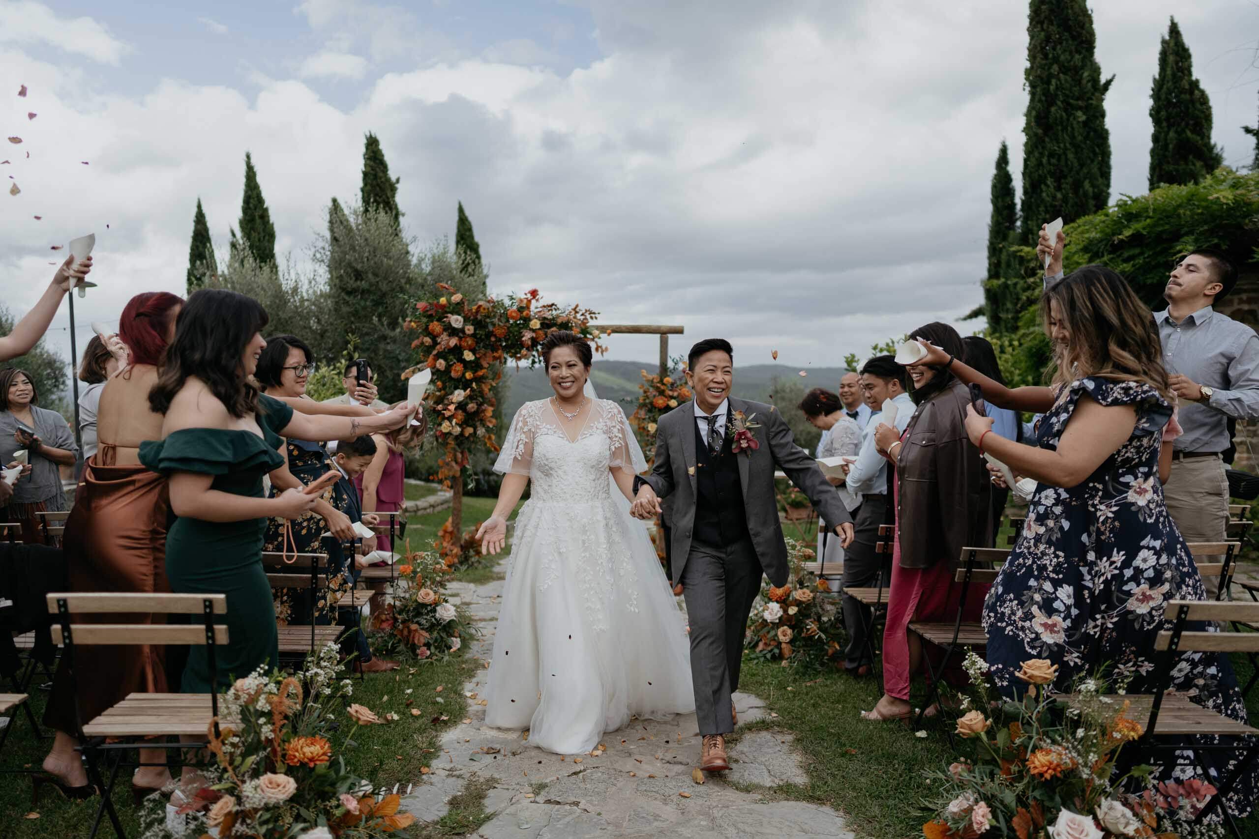This couple married in beautiful Tuscany, Italy to celebrate their love in style. And yes their wedding photographer was right there on the plane with them to make sure they didn't miss a single moment. Now they will forever remember this trip.